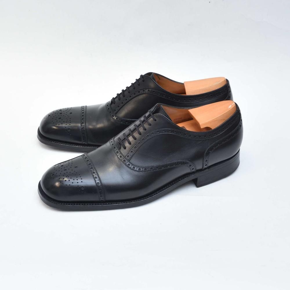 定番モデルよりモダンなイメージのブローグシューズです。履き口は大きめに設計し7アイレットの安定したホールド感、きめ細やかなカーフ素材は言うまでもなく一級品です。