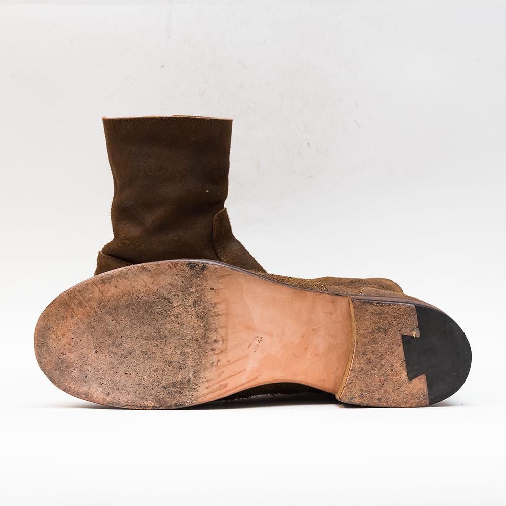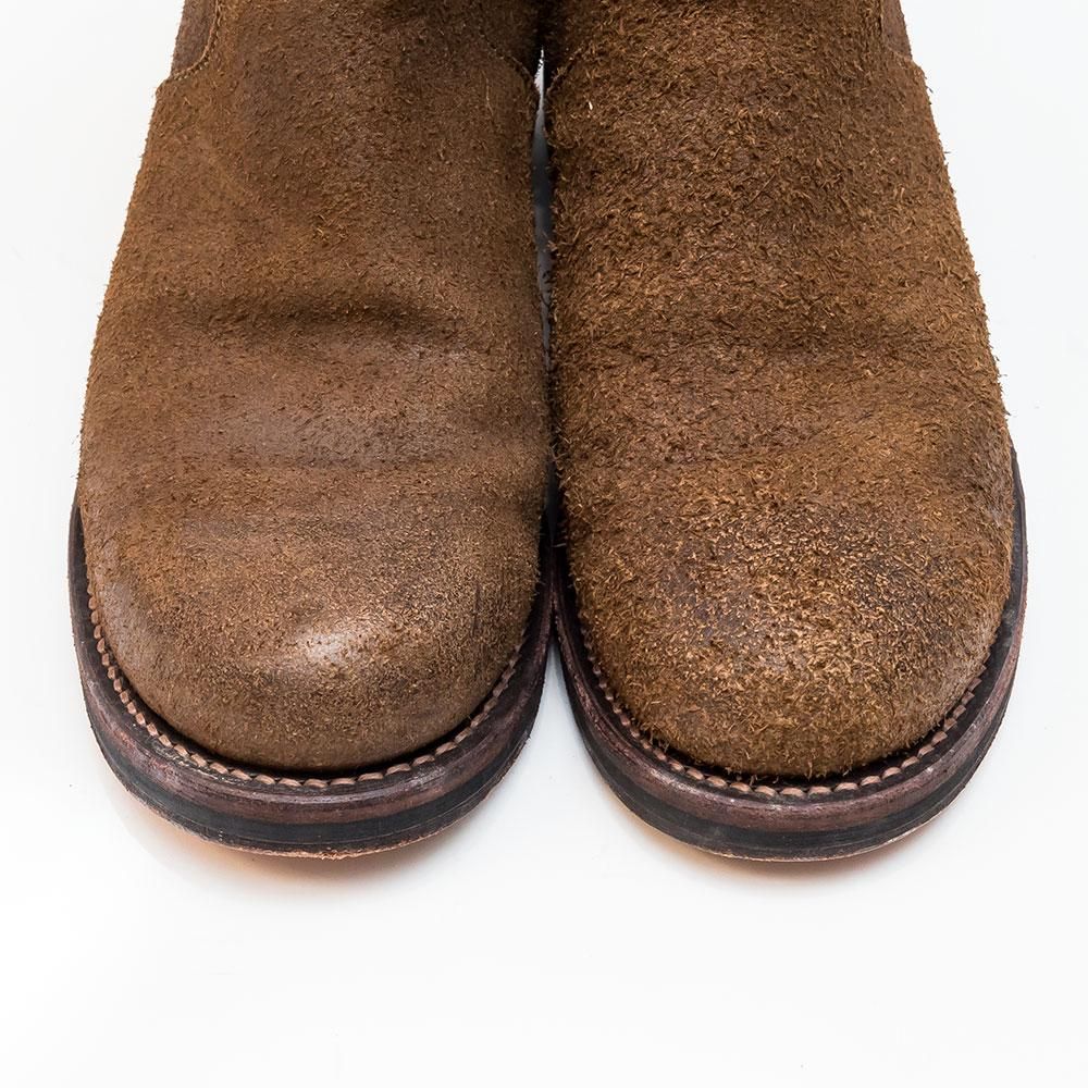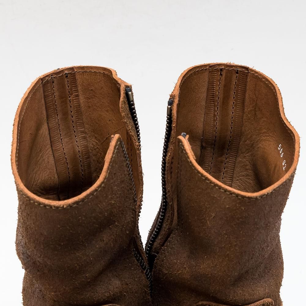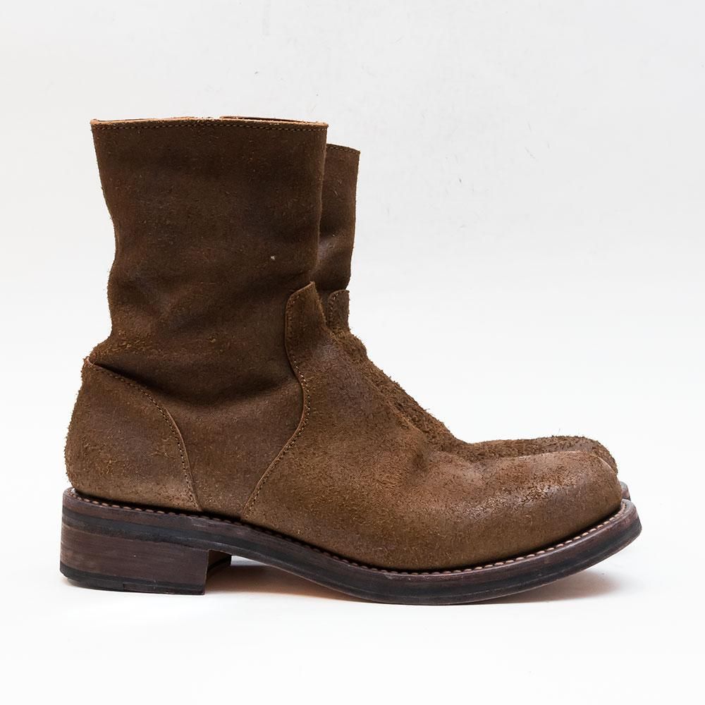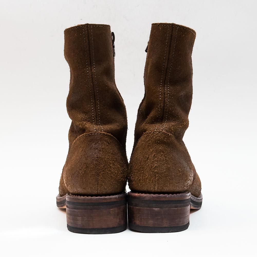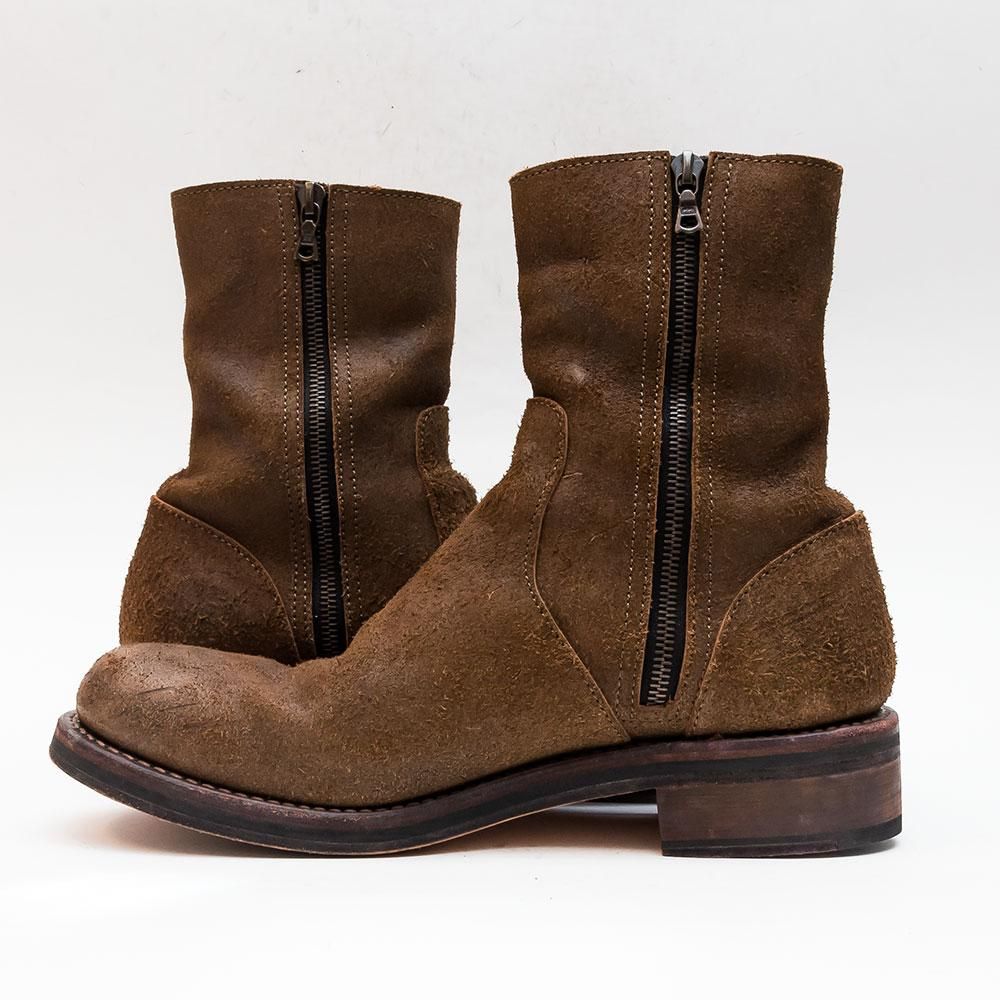 ステアスエードレザーに牛脂を塗りこみバフをかけることで長年履き込んだ質感に仕上げたサイドジップブーツ。 レザーソールには厚みがあります。グッドイヤー製法を採用。