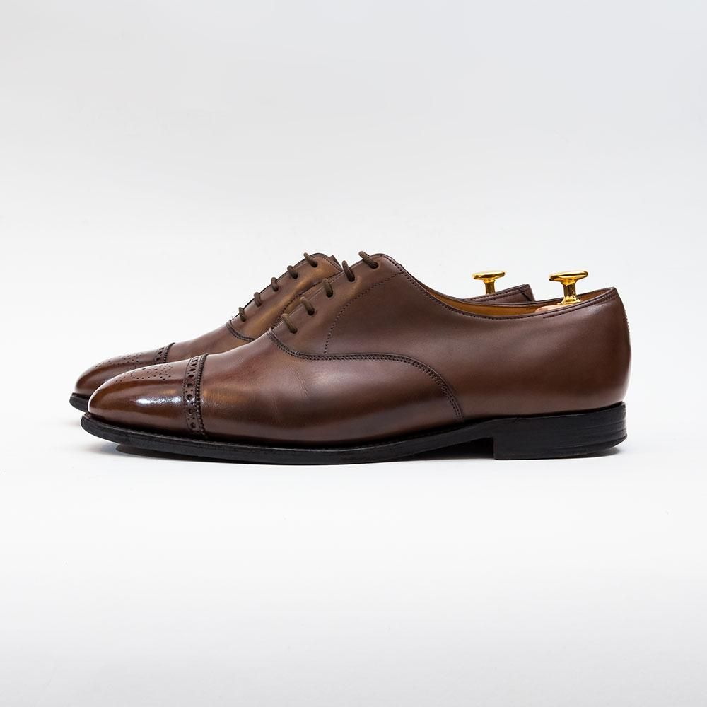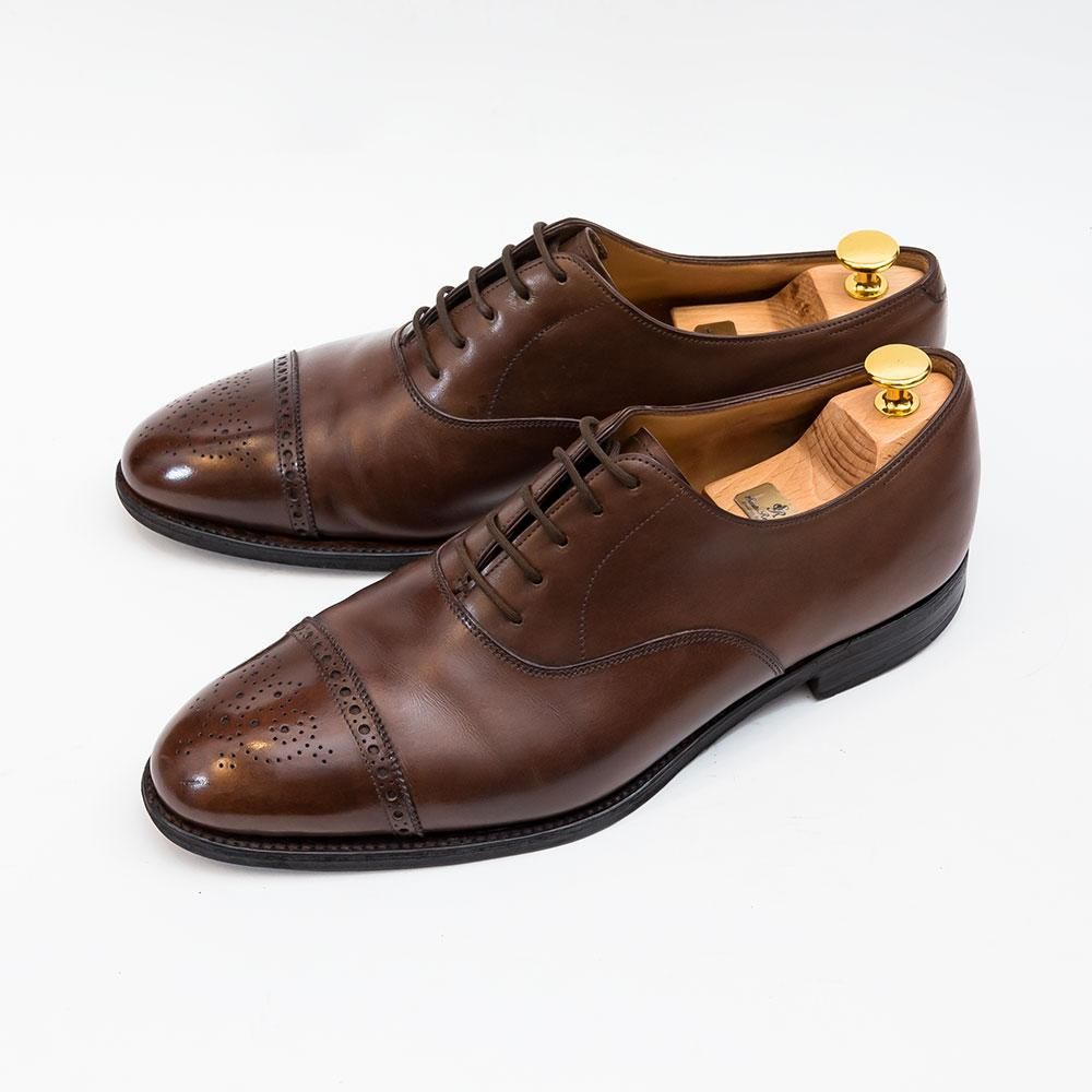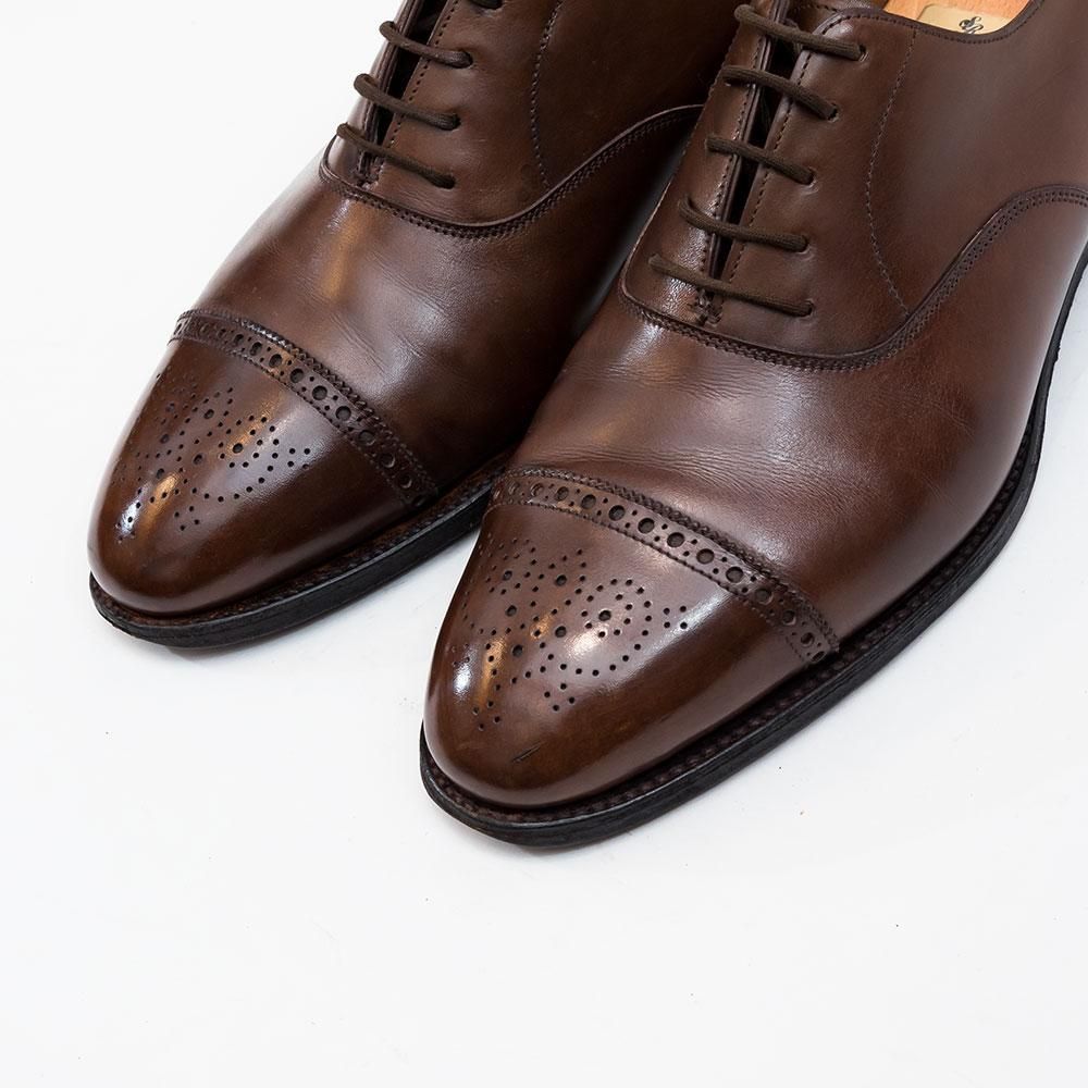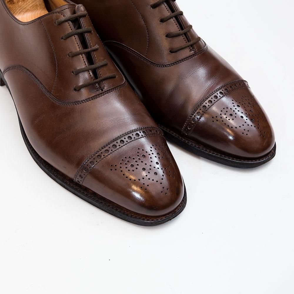 【ジョンロブ Grosvenor【グロウナー】メダリオン キャップトゥ セミブローグ ブラウン 8695ラスト サイズ9E】