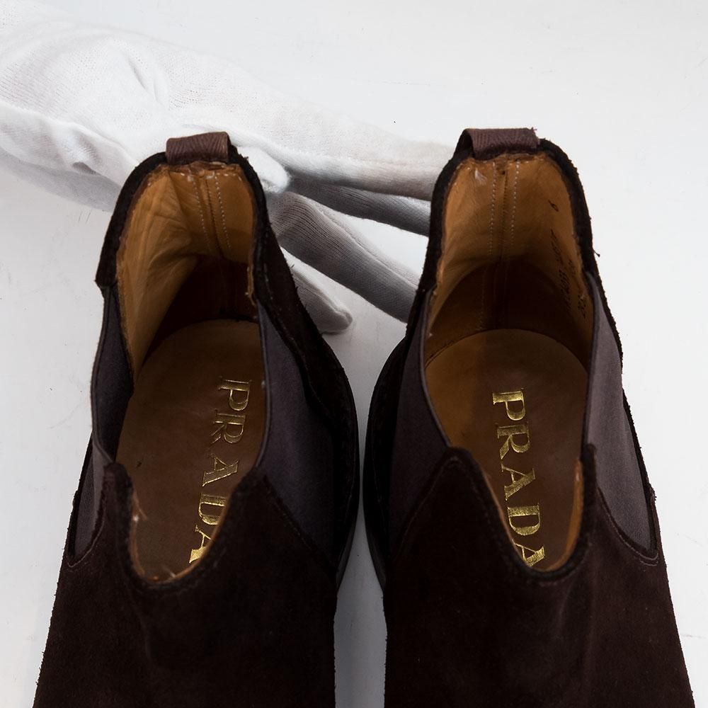 【プラダ サイドゴアブーツ スエード ダークブラウン チーニー製 サイズ6F】