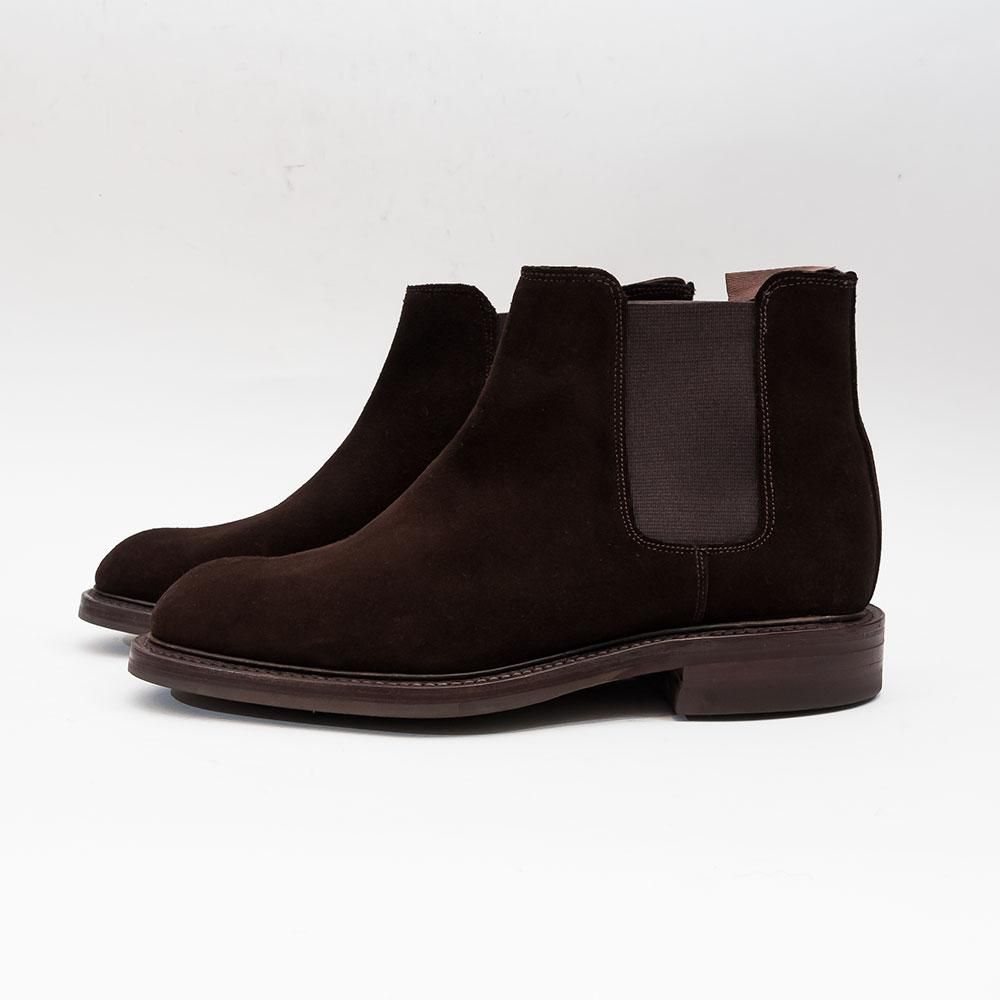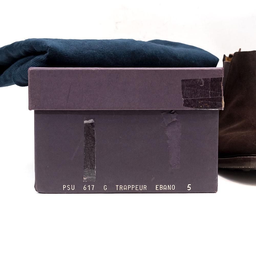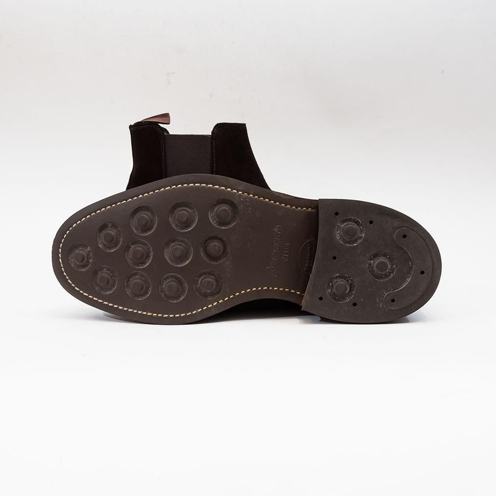 チーニーがプラダ傘下であった1999〜2009年の約10年の間に製造されたモデル。雨天でも気軽に履けるダークブラウンのスエードとダイナイトソール仕様です。