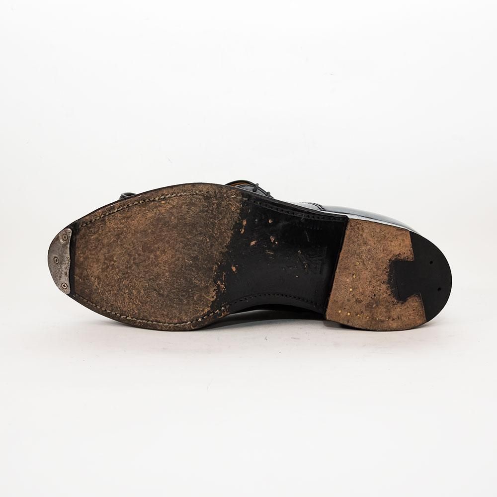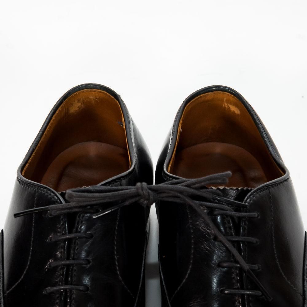 近年では数少ないノーズが短いクラシック形状のストレートチップ。フォーマル度が高い場面でしか合わないと思いがちですが、コバもある程度張っていてワイドパンツにも合わせれるオンオフ兼用できる使い勝手のいい仕様に仕上がっています。