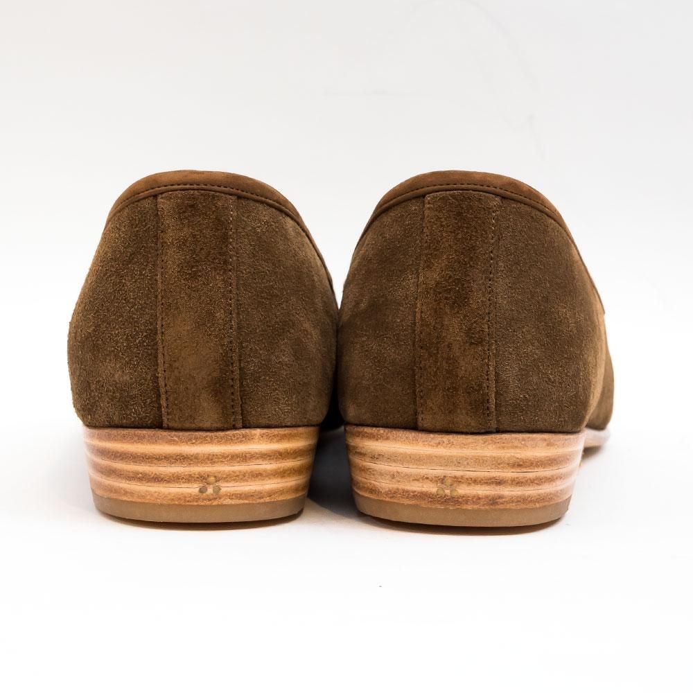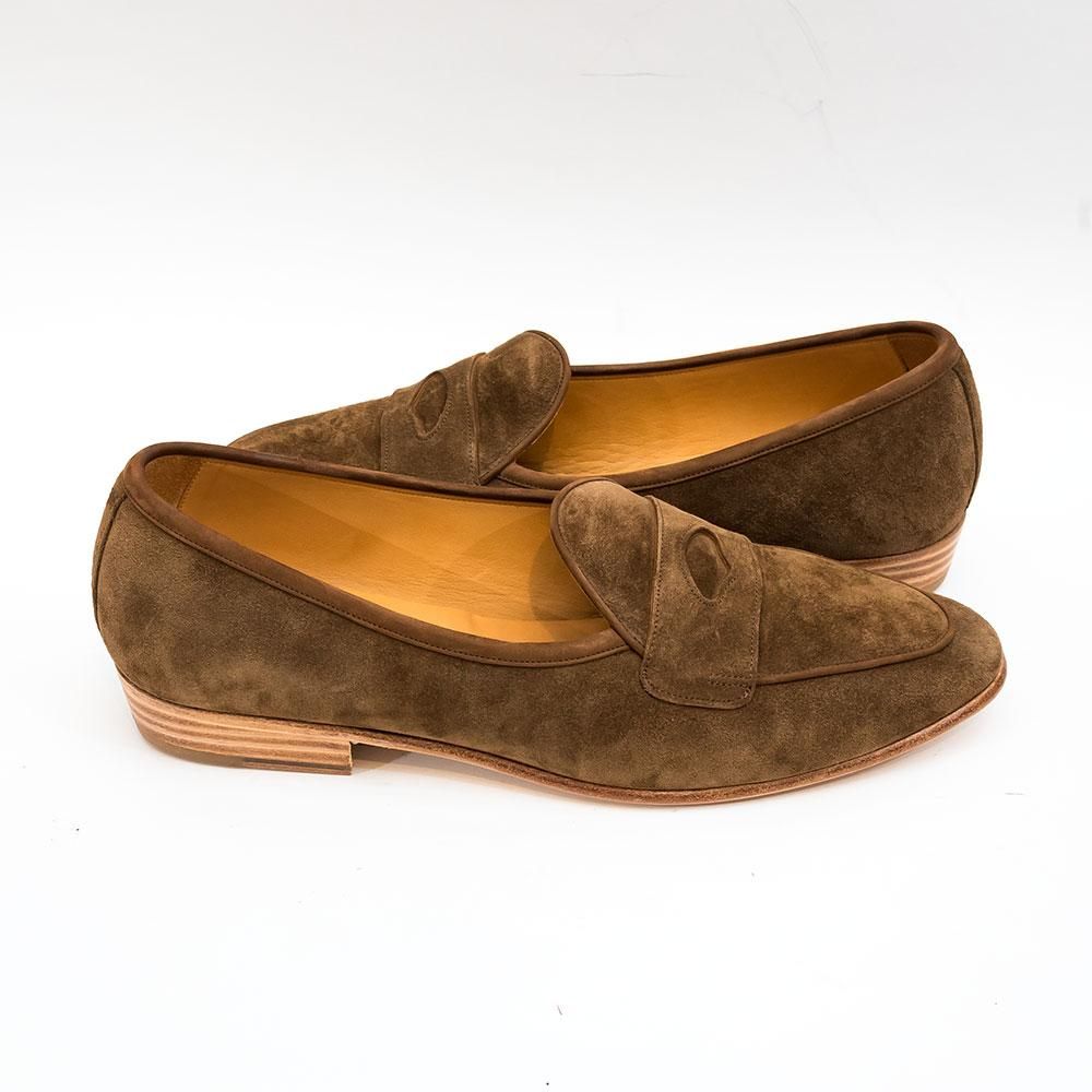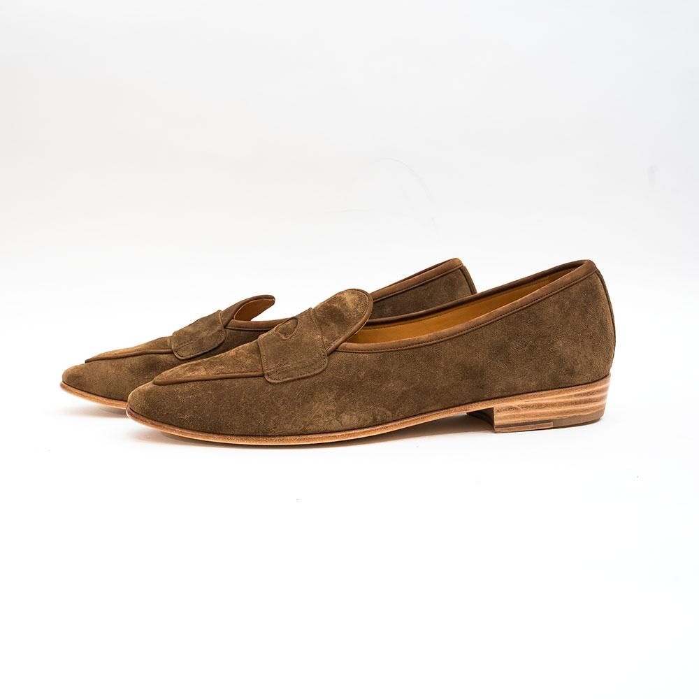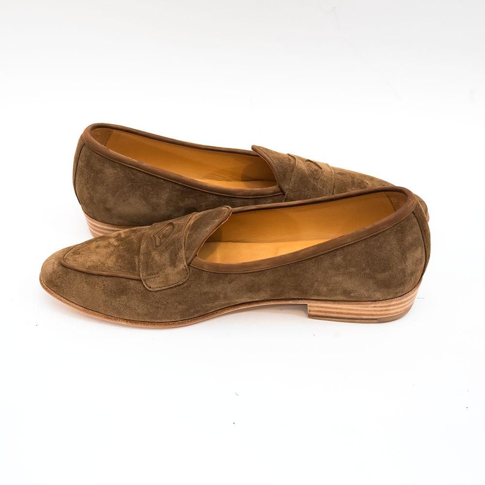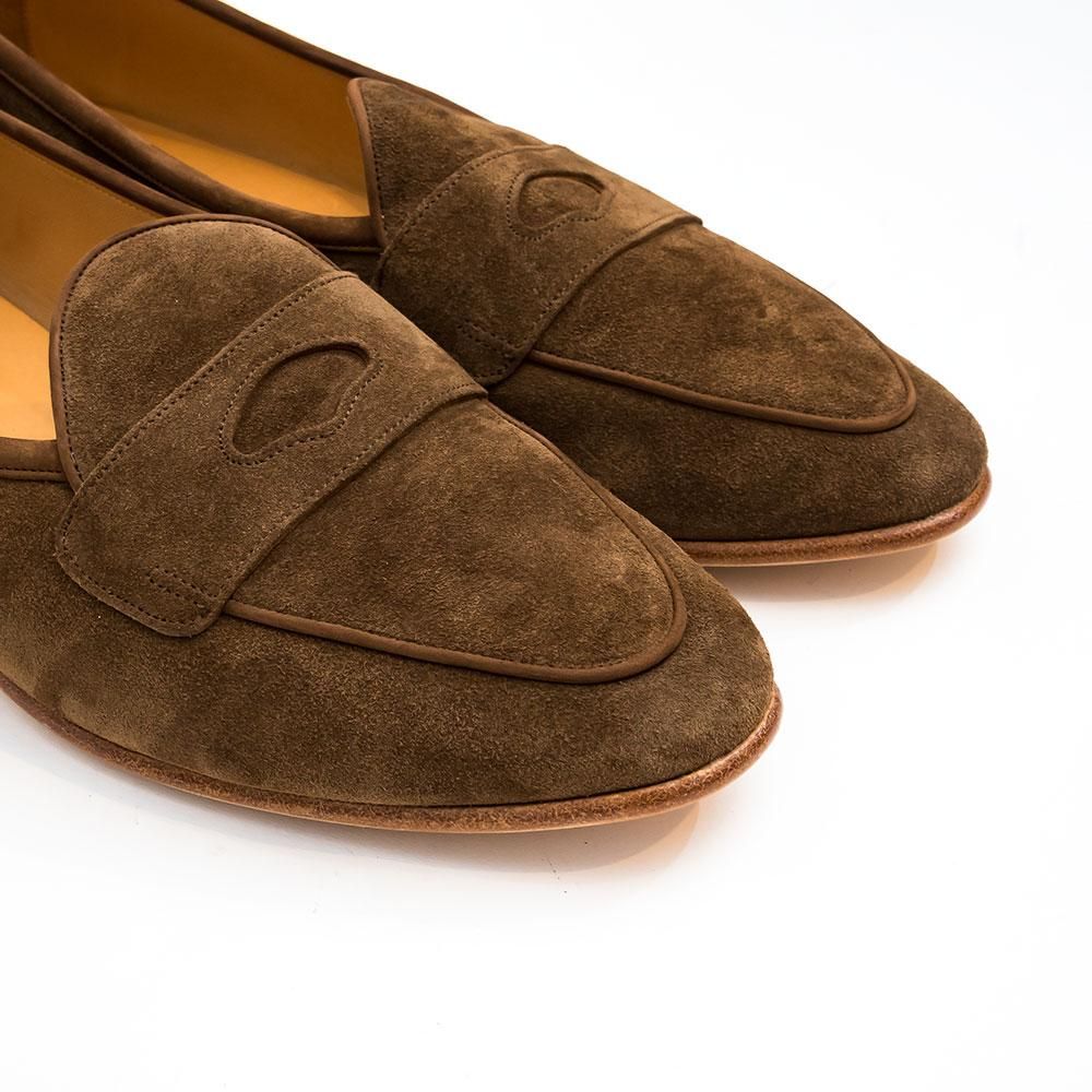エドワードグリーンの元職人によってオールハンドメイドで仕上げられたベルジャンシューズ。楽なのに足元を品よく飾れるので、近場にちょっとお出かけする際や旅先での履き替え用としてもとても便利です。
