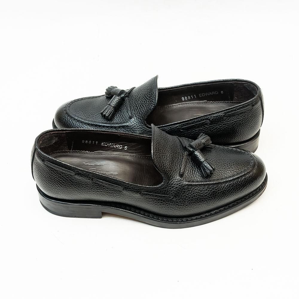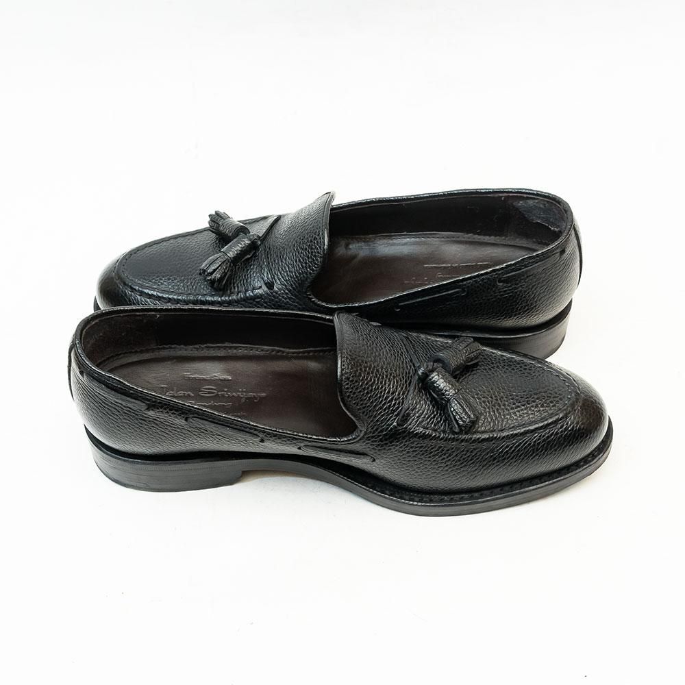 脱ぎ履きのシーンが多い日本ではローファーは非常に重宝する存在。ドレッシーな黒のタッセルローファーにラギットなシボ革を用いる事でカジュアル着にも使い易くなっています。インソールにサイズ調整跡が御座います。