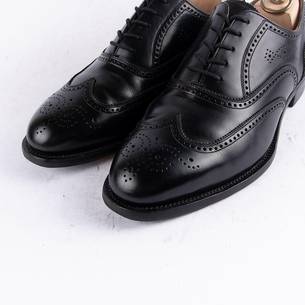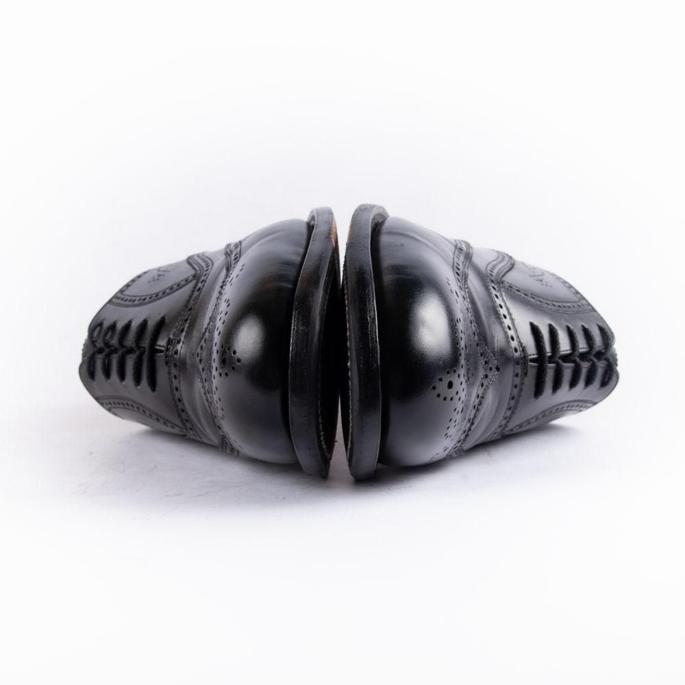 羽根のサイドにもパンチングが施されたフルブローグシューズ。コバの張りを抑えたパンチングも細かい内羽根ウイングチップの為、ビジネス使いにスーツと合わせても足元に程よい華やかさをもたせてくれます。