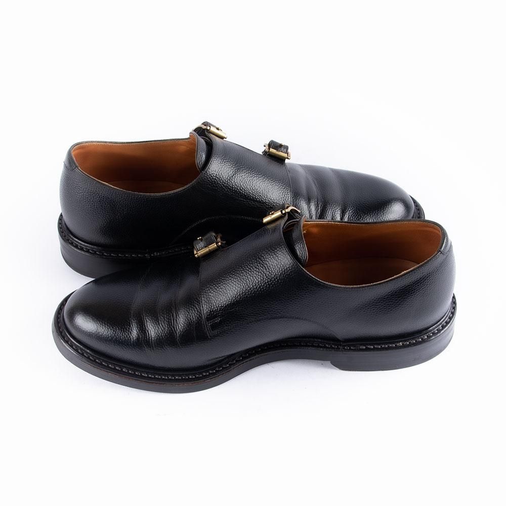 現在では使用展開のないグレインレザーを採用したカルマンソロジーのダブルモンク。凹凸感の細かなシボ革はカジュアル感と上品さのバランスがとても良く、ゴールドのストラップが一層テクスチャーを引き締めています。