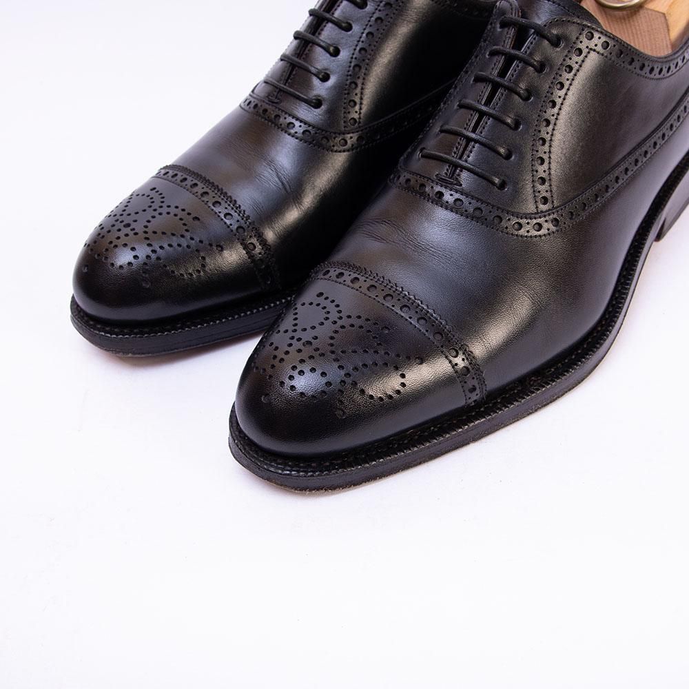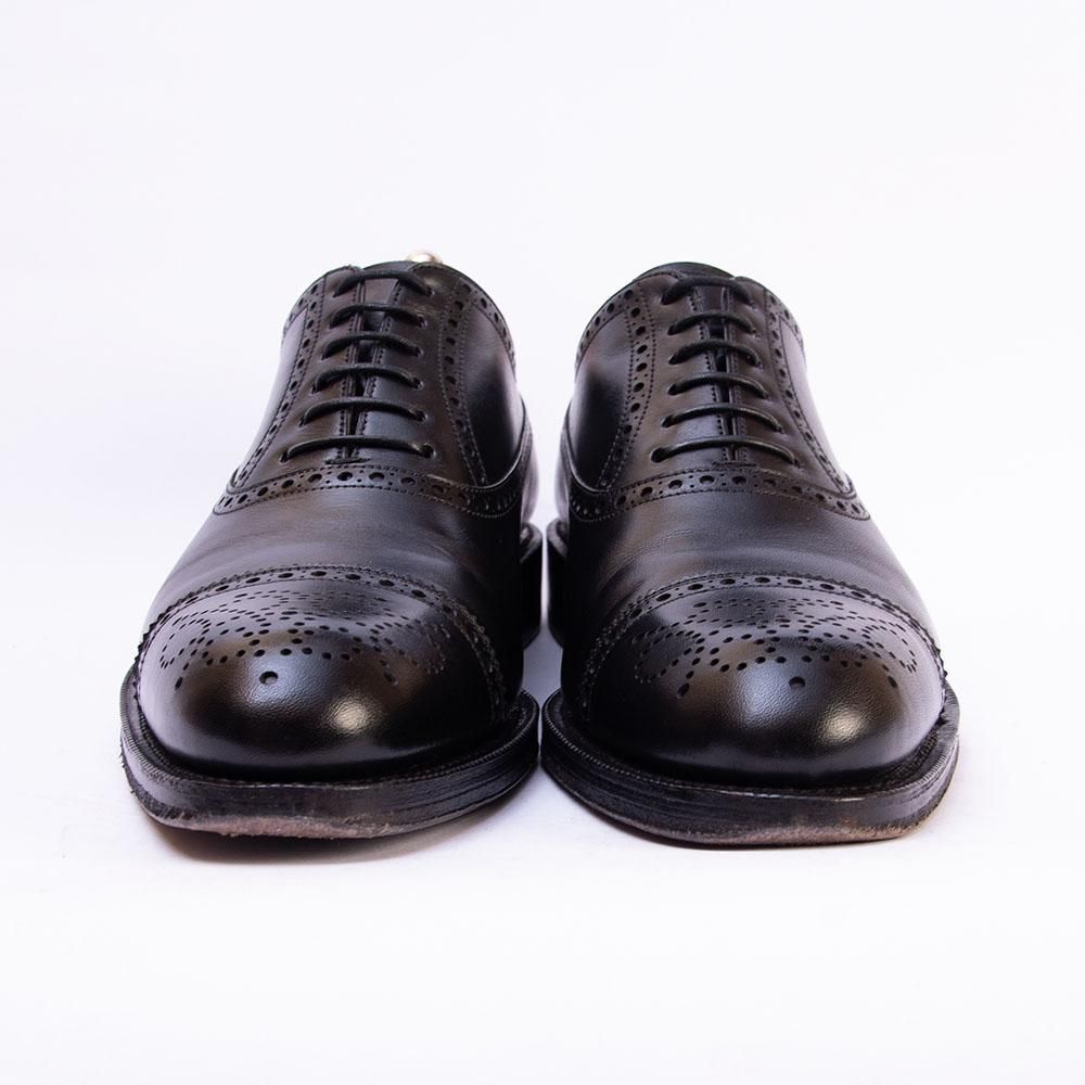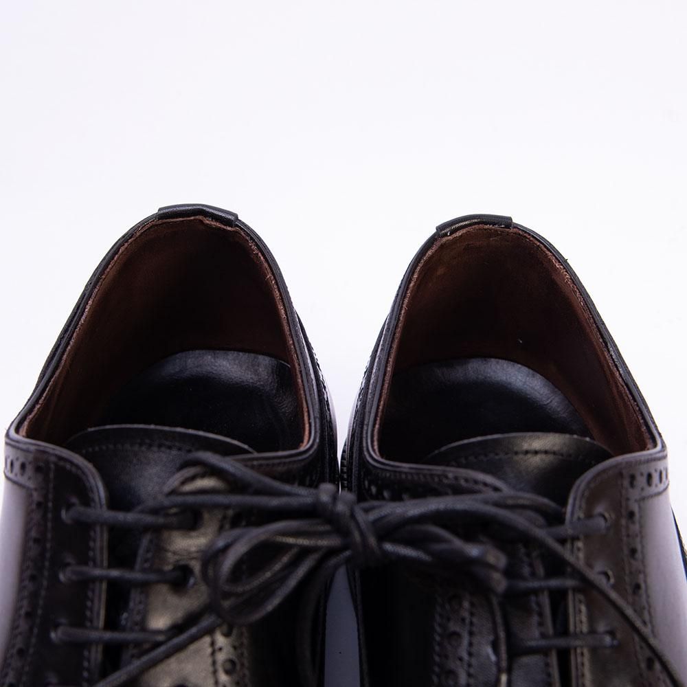 スペインを代表するカルミナでもクラシカルなラウンドトゥのロバートラストを使用し、羽根の切り返しが一周するデザインがアクセントととなっています。こちらは右足バンプにトラ有りの個体となっています。