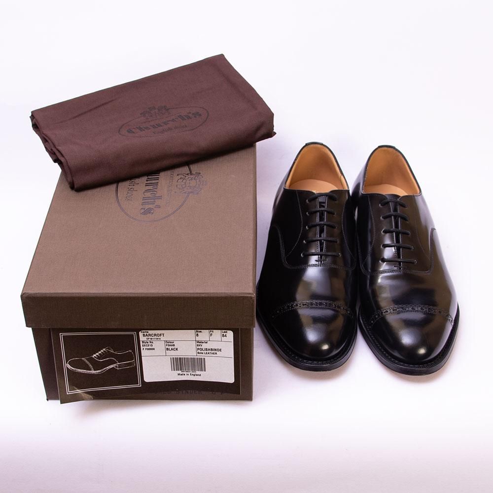 【チャーチ BARCROFT(バークロフト)内羽根パンチドキャップトゥ ポリッシュドバインダー ブラック サイズ80F】