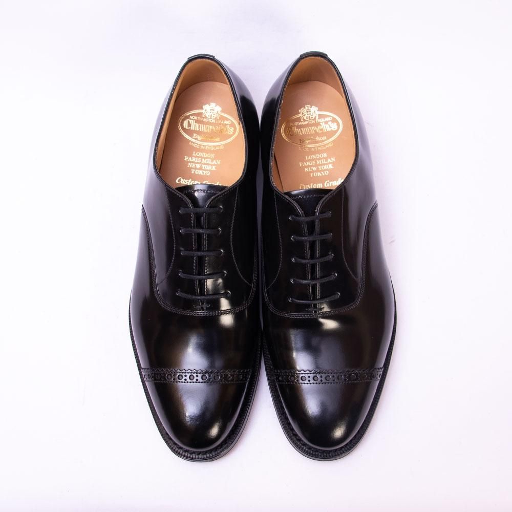 チャーチ BARCROFT(バークロフト)内羽根パンチドキャップトゥ ポリッシュドバインダー ブラック サイズ80F