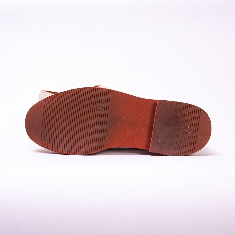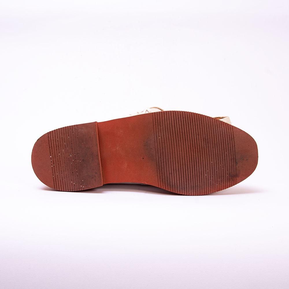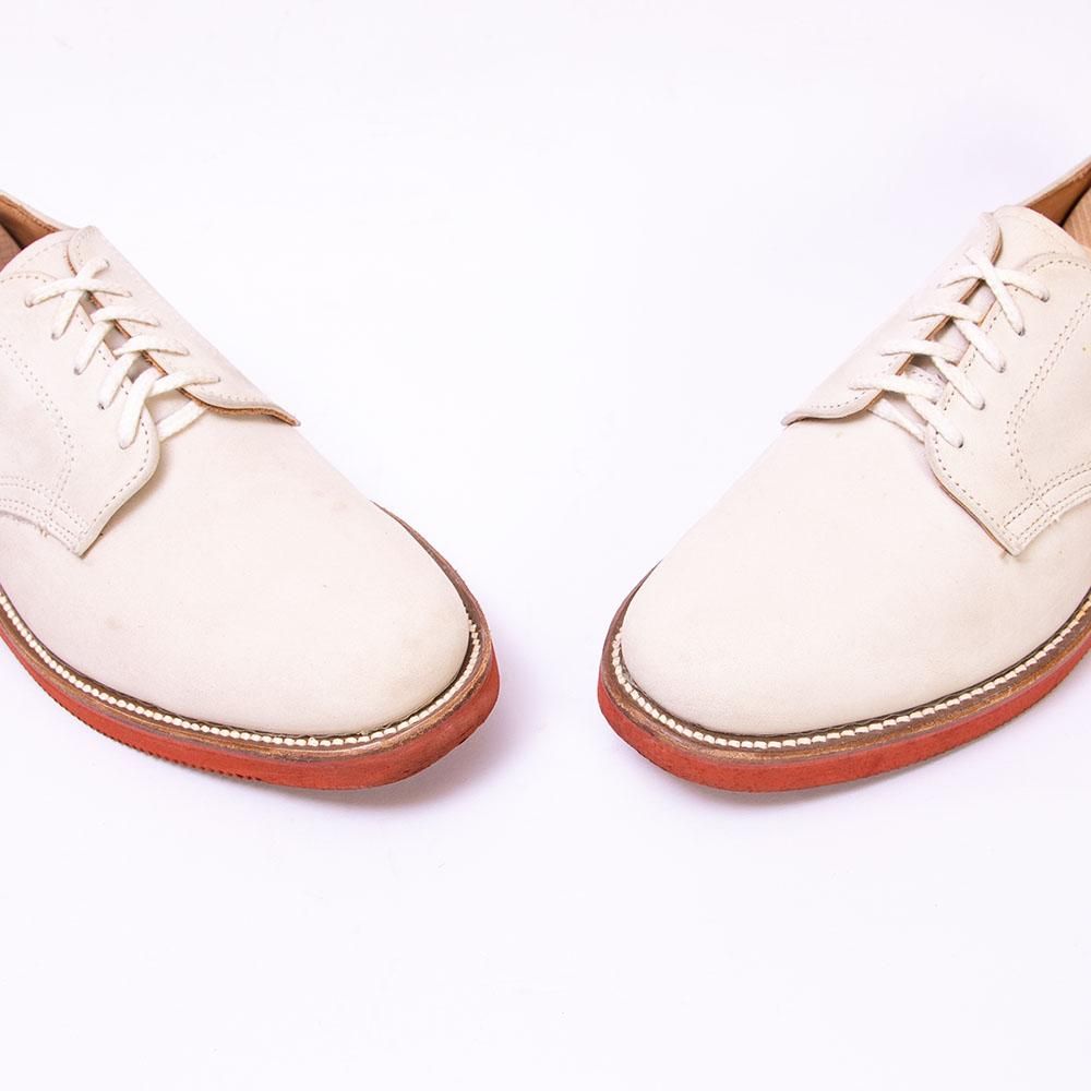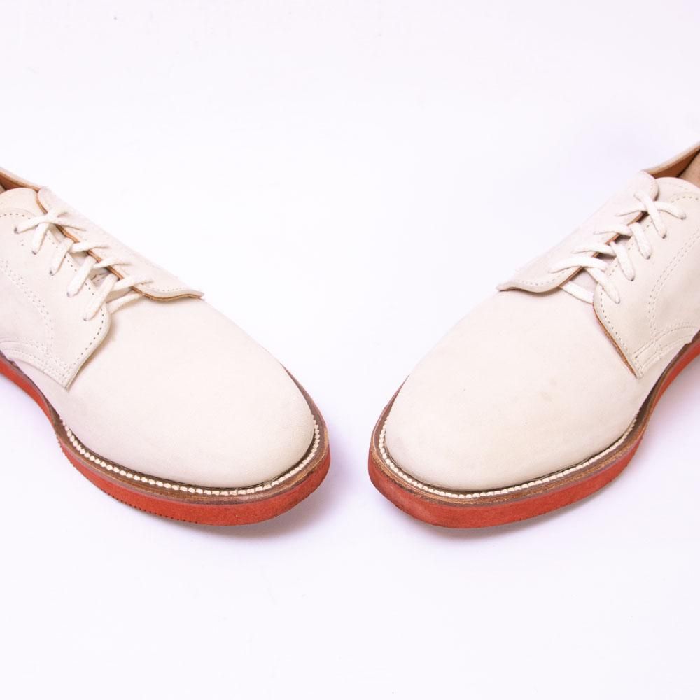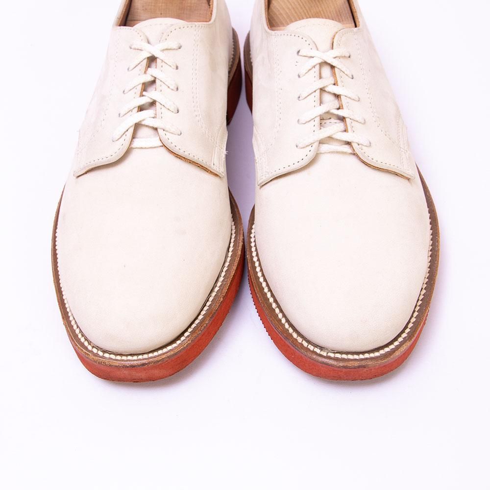 アメリカントラッドスタイルを地で行く老舗ブランドのウォークオーバー。アイコニックなレンガソールとも言われる赤土色のラバーソールとオフホワイトのバックスキンの対比が爽やかに仕上がっています。