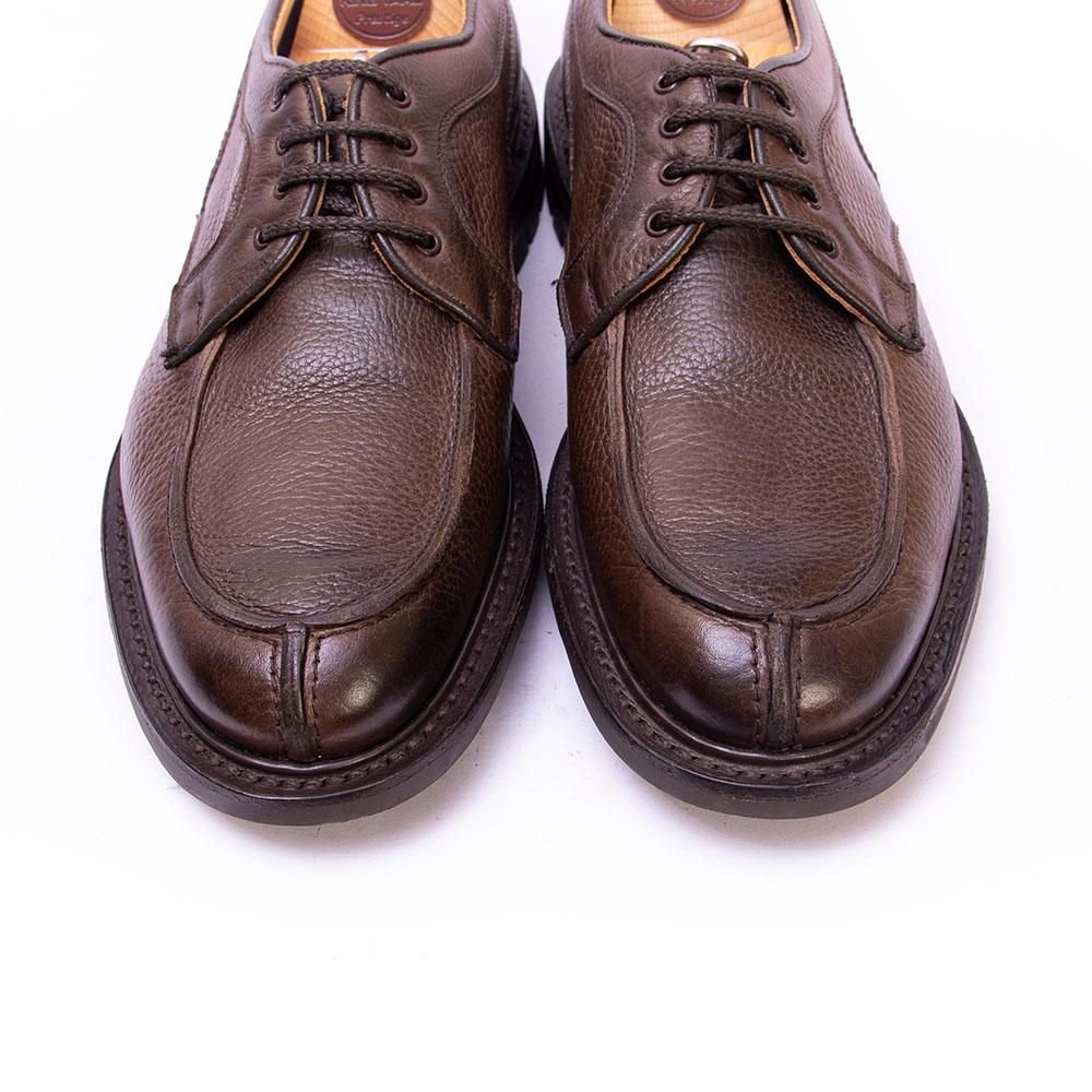 4アイレットにやや長めのノーズを飾るUチップのヴァンプデザインが印象的なアイテム。ストームウェルト付きのコバの張ったコマンドソールにグレインレザーとタフな印象がトリッカーズらしい仕上がりとなっています。