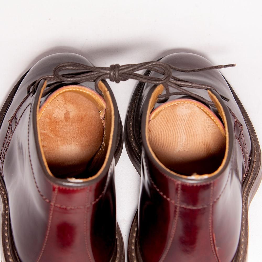 希少性の高いコードバンを採用した2アイレットのチャッカブーツ。コードバンチャッカの代表格オールデン1339よりも一回り剛健な佇まいでトリッカーズらしさも垣間見えるお品です。