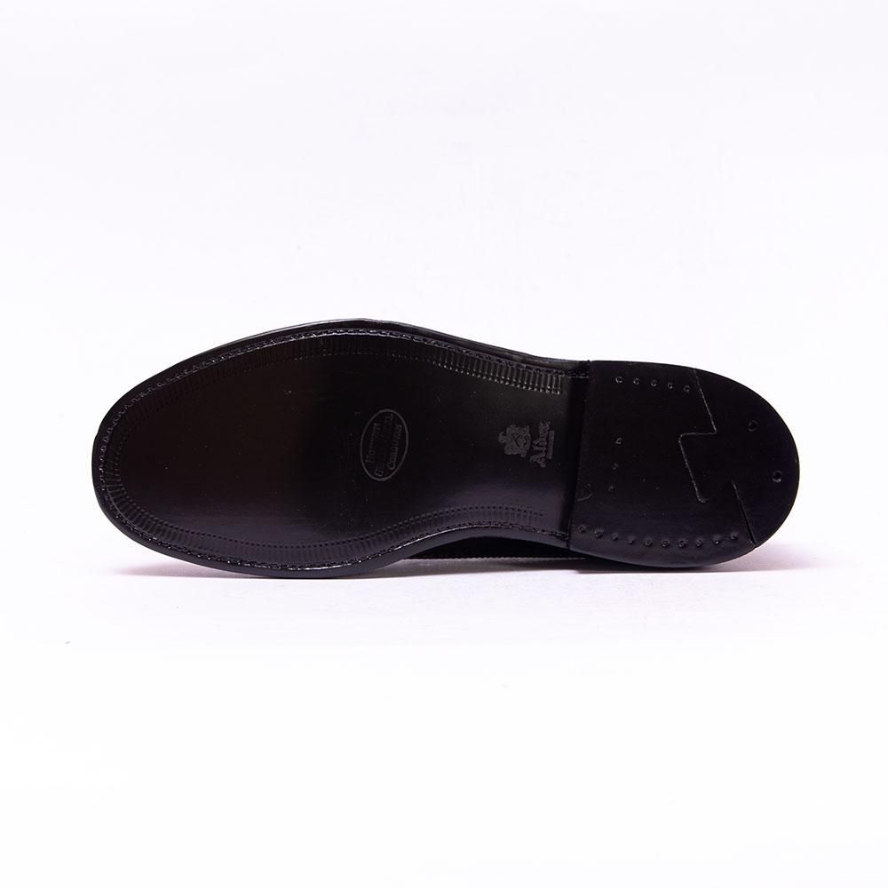 ロングウイングチップのデザインでブラックコードバンを採用した9751は重厚感のあるアイテム。踵周りもしっかりとコバのはったオールラウンドグッドイヤーウェルト製法はバンパーの役割も果たしてしっかりと足を保護しています。