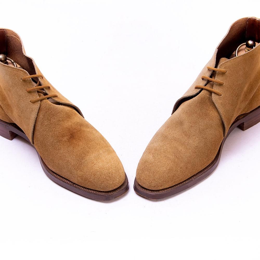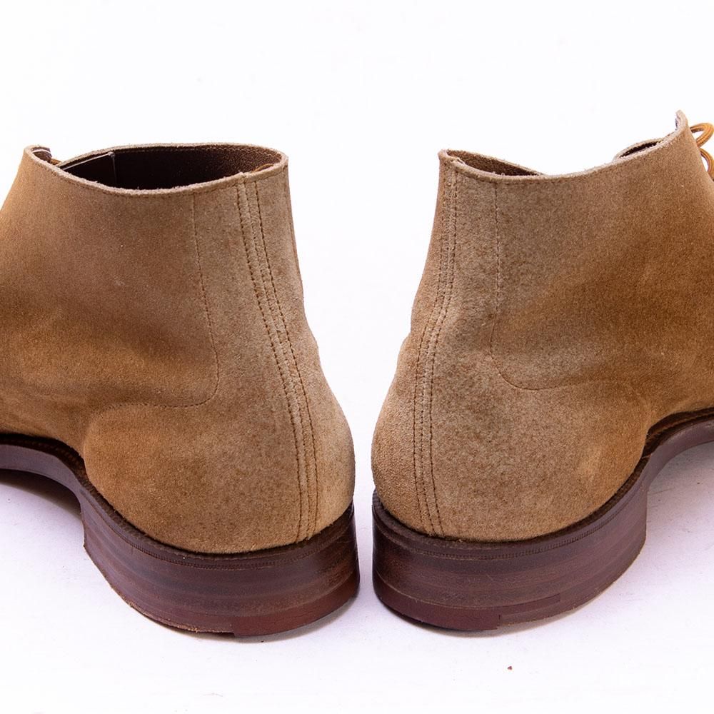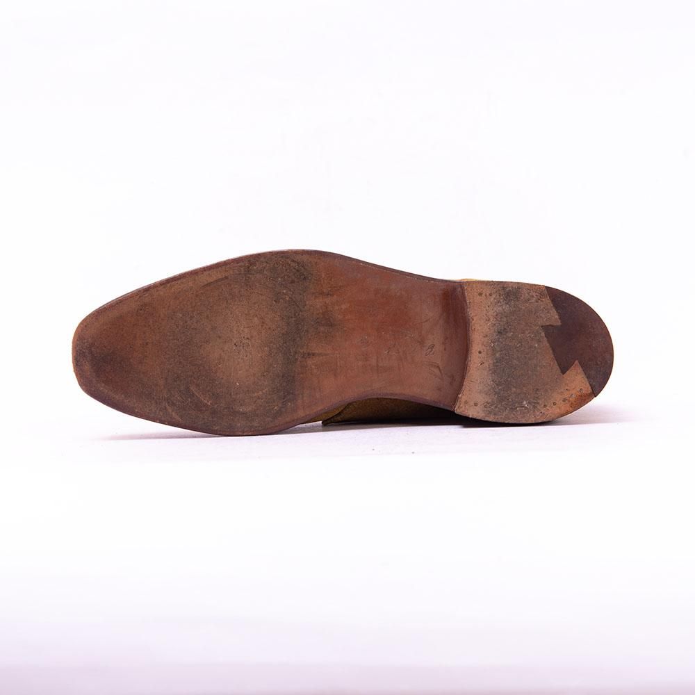 英国の首都ロンドンに拠点を構えるジョージクレバリー。ビスポークシューズをメインに扱っており、既成靴はクロケット&ジョーンズに製造を委託しています。アッパーのスエード全体に退色による色ムラが見受けられます。