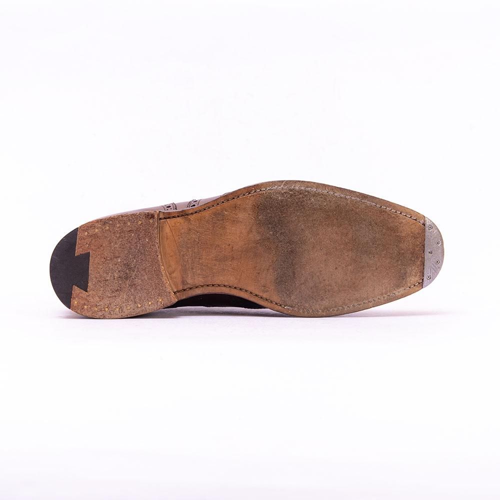 外羽根と比較して内羽根になるとグッと引き締まった印象のウイングチップシューズ。イギリス靴のその中でも代表作とも言えるチェットウィンドですがこちらトップリフトの交換時期となっている為お値段抑えております。