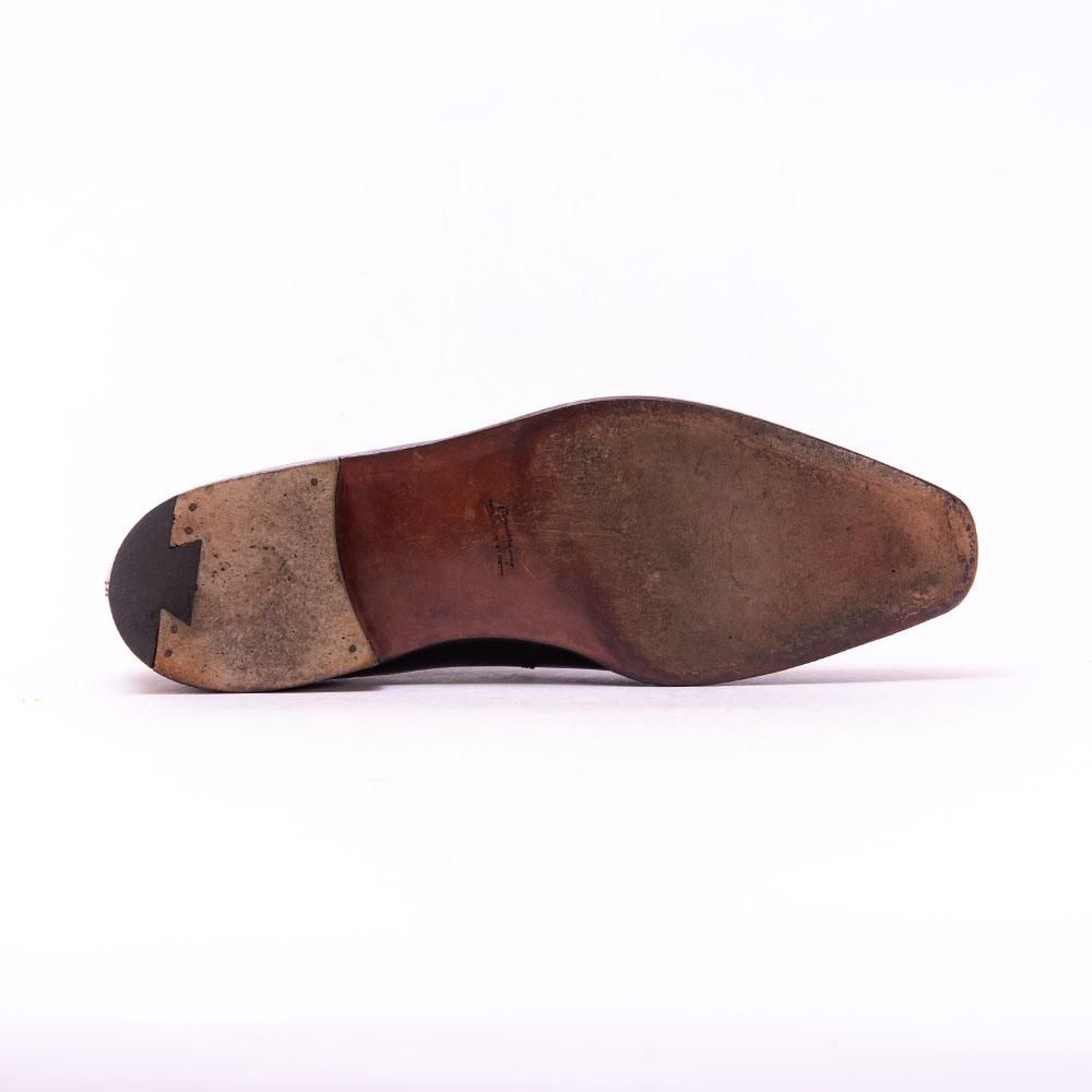 コルテの看板アイテムであるアルカはレディメイドとビスポーク、両方の職人の監修の元に作り上げたセーブルラストを使用しています。なだらかに落ちるセミスクエなつま先と切り立ったサイドラインが独特の雰囲気です。