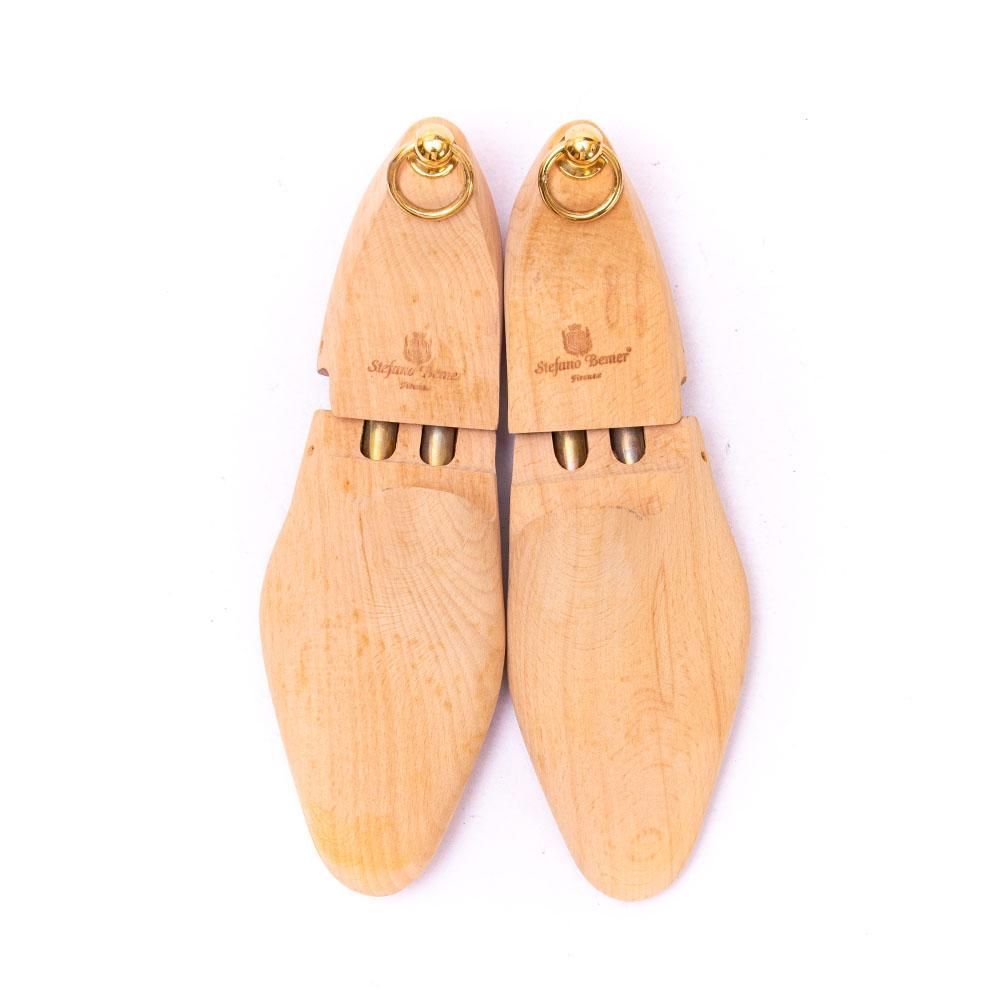 物々しい木箱から開封して靴を取り出すまでワクワクさせてくれるステファノ・ベーメルの靴。ビスポークシューズを思わせる低く設計された第一の甲から伸びやかに立ち上がる羽根のラインが美しいシルエットを描いています。