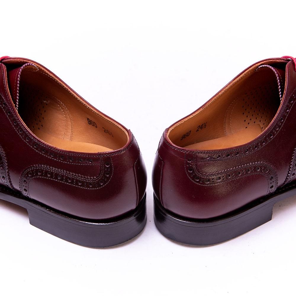 スコッチグレインの高級ラインのインペリアルシリーズの960はアッパーにアノネイ社ベガノカーフを使用しボルドーカラーによるエイジングの楽しめる一足。内羽根セミブローグでスーツファッションのスタイルの幅を広げてくれます。