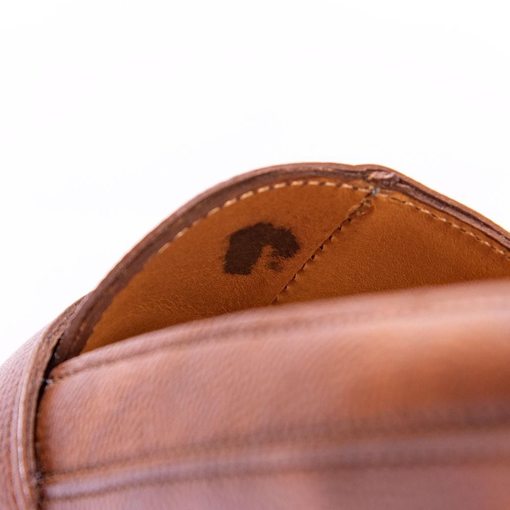従来のジョンロブより多いパーツで作られたニュークラシックラインのアドレイ。切り替えの重なりを左右で変えるオーバーラッピング製法で遊び心も垣間見えます。こちらは右足タン裏血痕がございます。