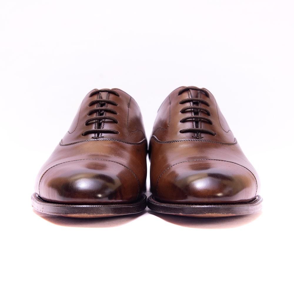 ダークオークアンティークカラーのブランド代表モデルのチェルシーは細かいステッチワークの技術がより際立ちます。スワンネックも強調されるのも魅力です。こちらは5回未満の使用感でこれからエイジングが楽しめます。