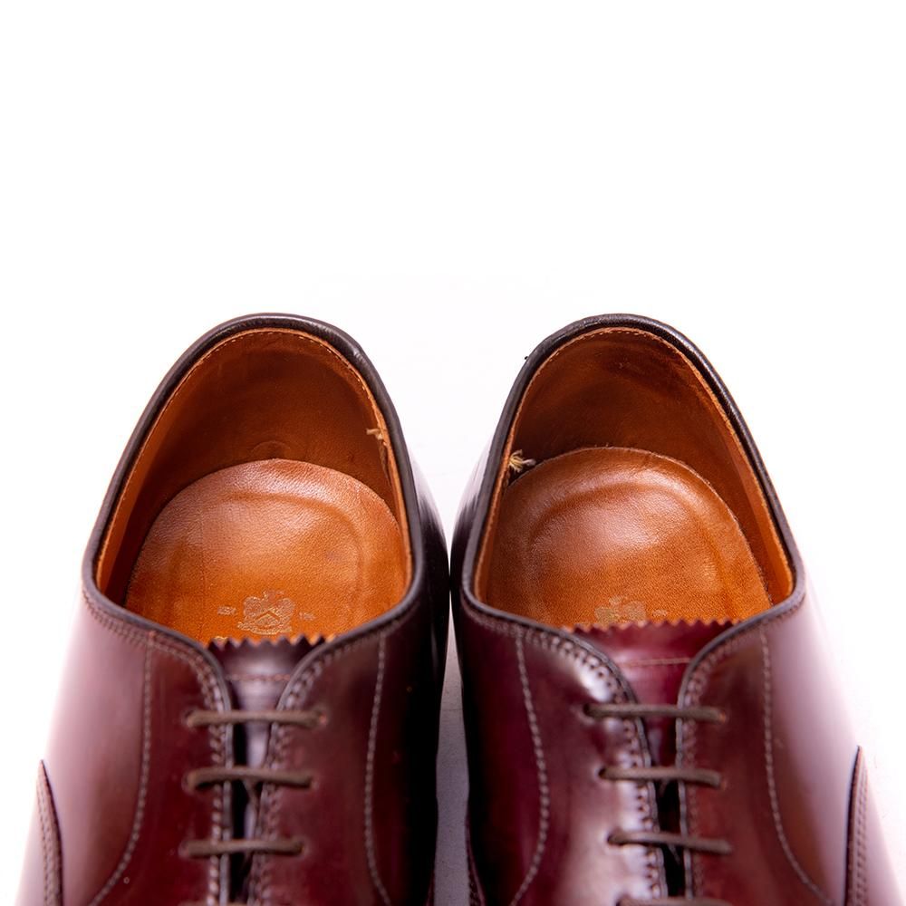 カジュアル革靴の知名度の高いオールデンの中でクラシカルなシルエットを踏襲した内羽根のシューズ。アメトラを代表するマテリアルであるコードバンを採用した当にオールデンらしいドレスシューズです。沈みも少ない個体。