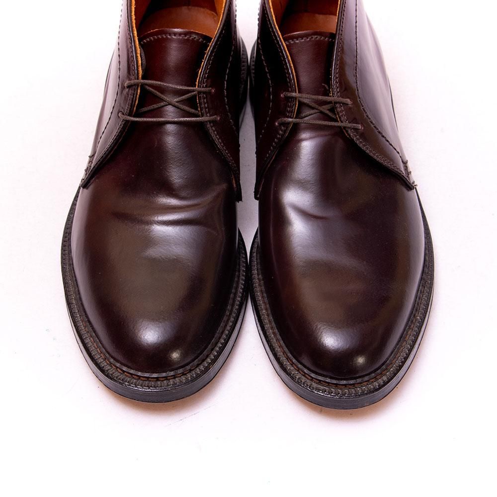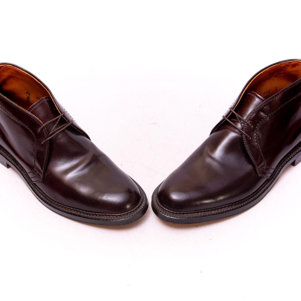 ボリューム感のある無骨なミドル丈のチャッカブーツの名作モデルのオールデン1339。コードバン特有の深いシワや色の経年変化で履き込むほどにかっこよく愛着が増していきます。室内試着程度の未使用の状態です。