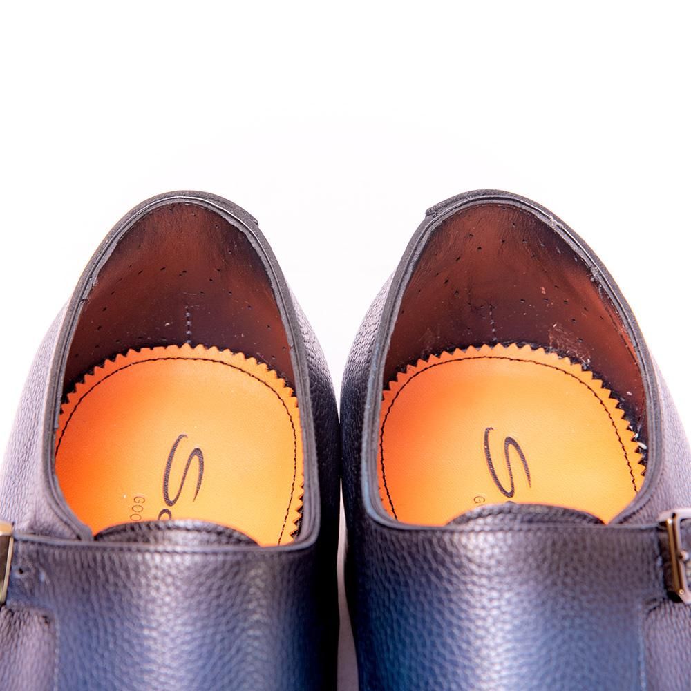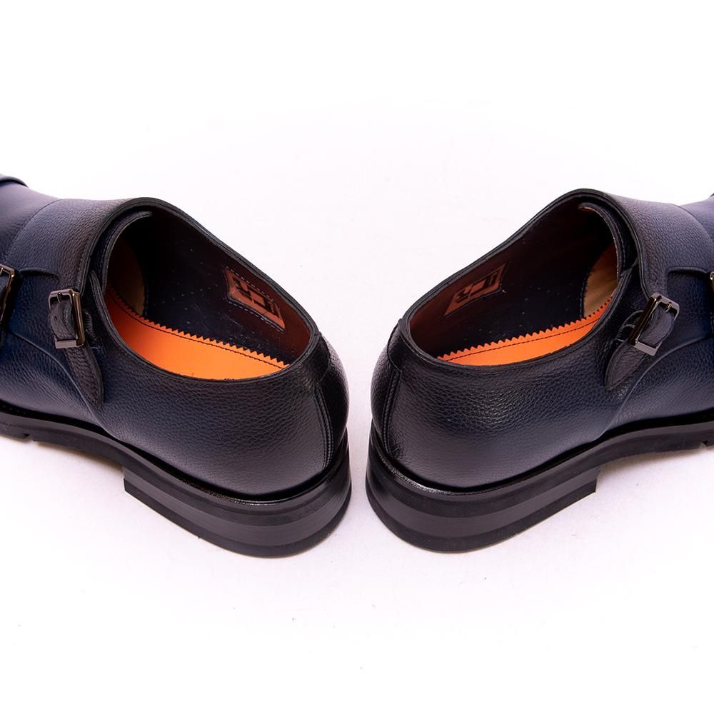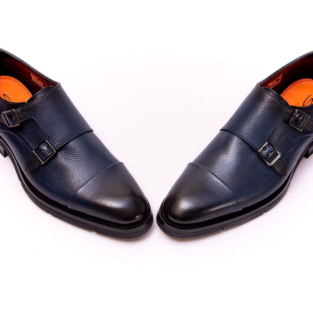 サントーニが得意とするエレガントなフォルムのダブルモンクにクールな深いダークネイビーが映える一足。表情のある型押しの革でジャケパンなどの抜け感のあるスタイリングにもマッチしやすく傷や汚れにも強く実用度も高いです。