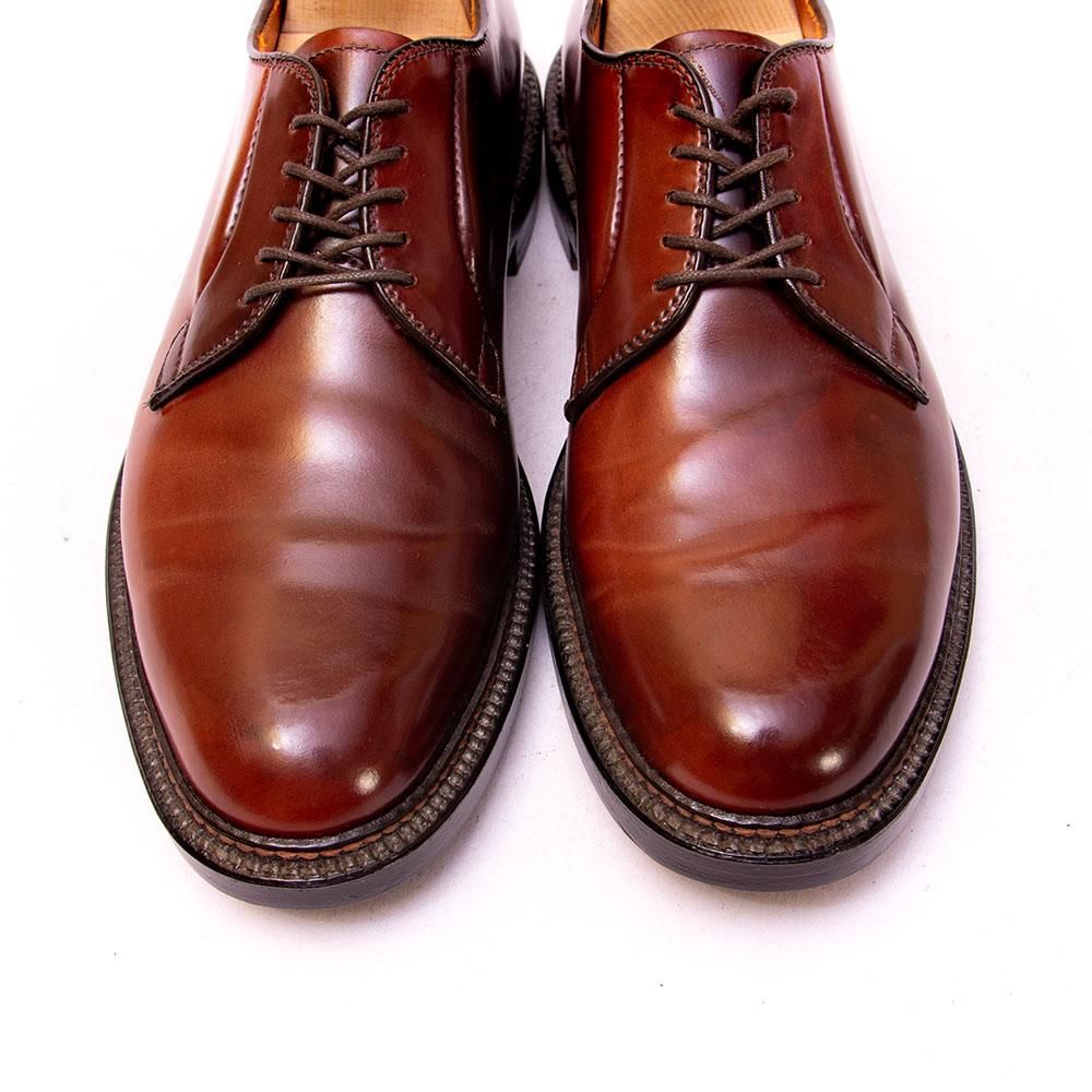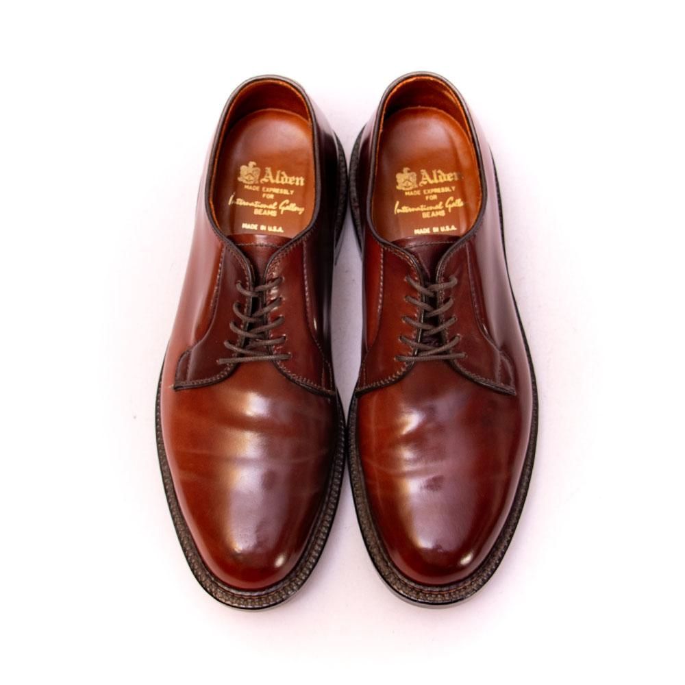 オールデンを代表するプレーントゥ。こちらはNo.8カラーの中でも特段色味も薄く、赤みも少ないバーガンディコードバン個体。厚みやフィット感も良好な内容で珍しさと作りのいい良個体です。詳細な色味やムラ感など動画にて御覧ください。
