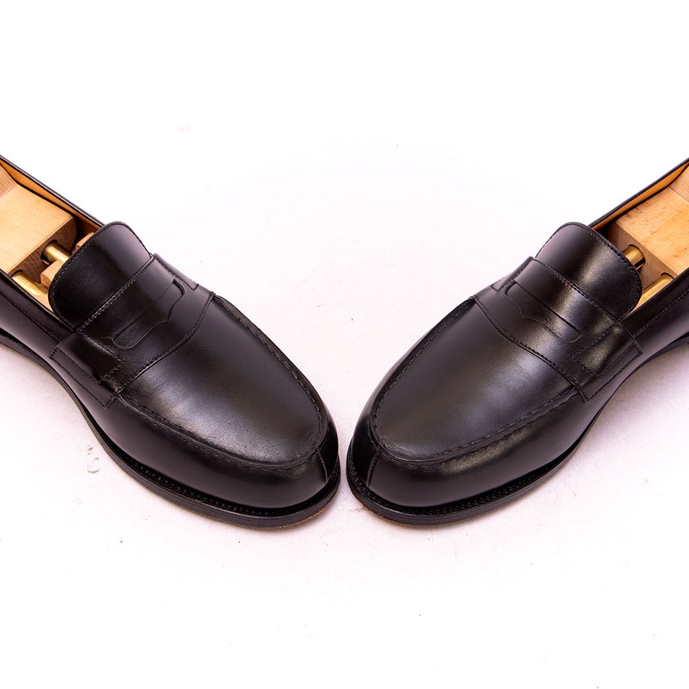 普遍的なコインローファーの昨今のファッションシーンで確立した人気を誇るJMウエストンの180。均一で繊細なモカ縫いで洗練された印象です。着用数回程度のほとんど使用感のない状態となっております。
