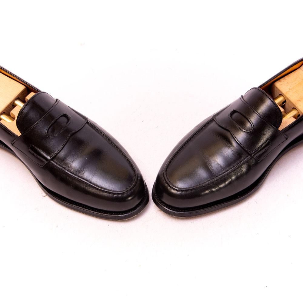 楕円状の窓がアイコニックなジョンロブを代表するコインローファー。綺麗に処理された端正な合わせモカや、細やかなステッチワークが光ります。使用回数も10回前後のコンディションでハリツヤのある革個体です。