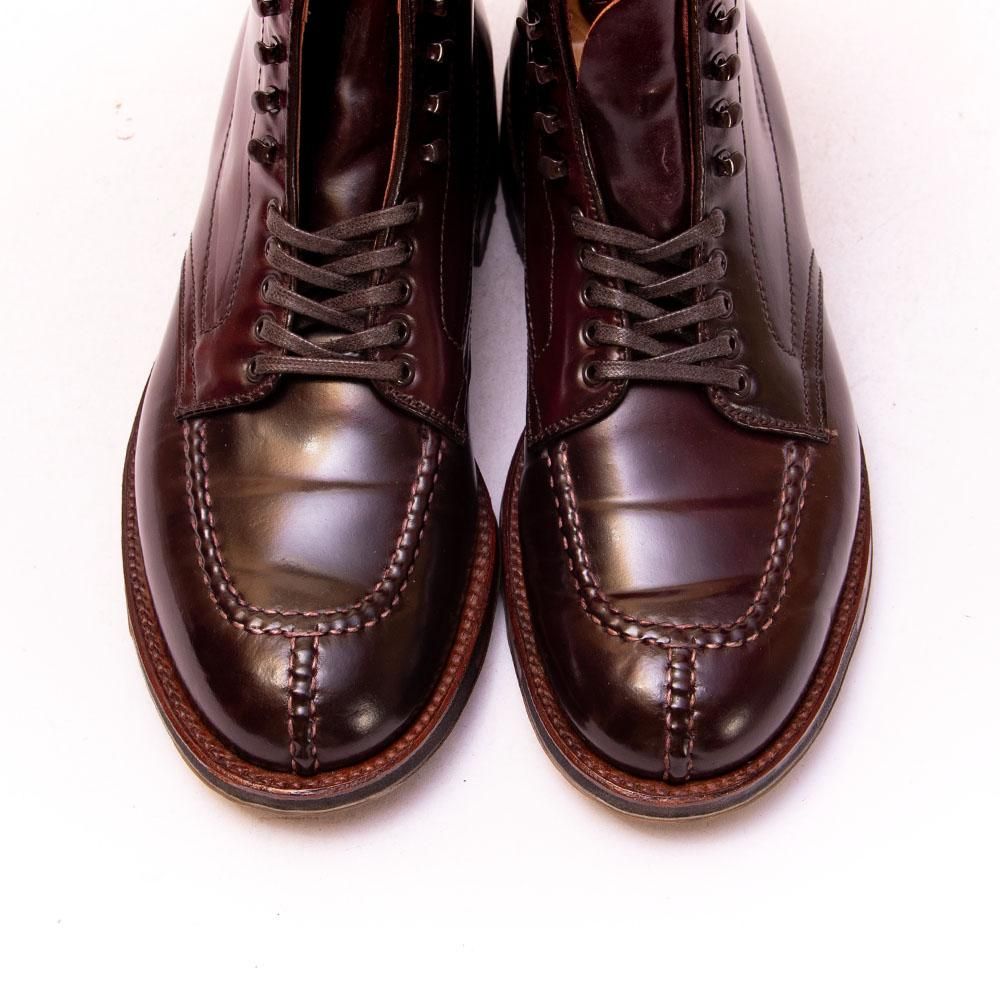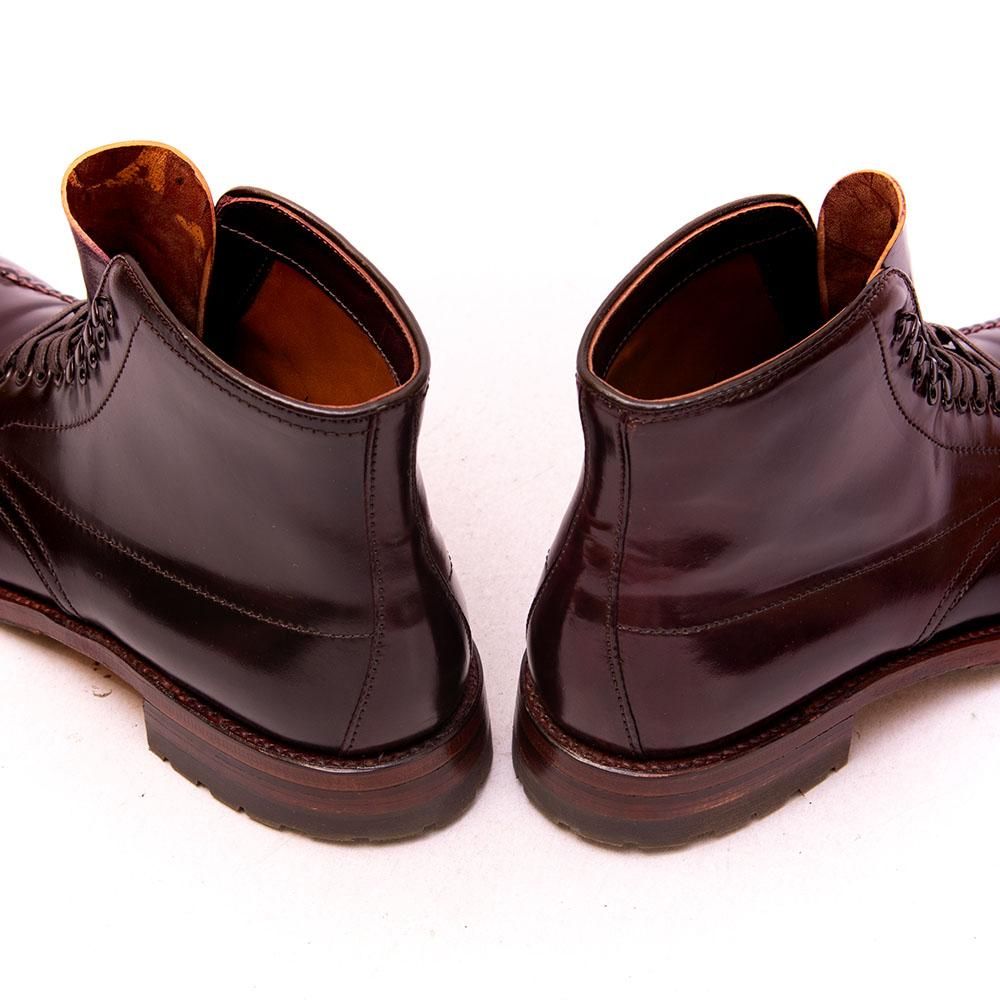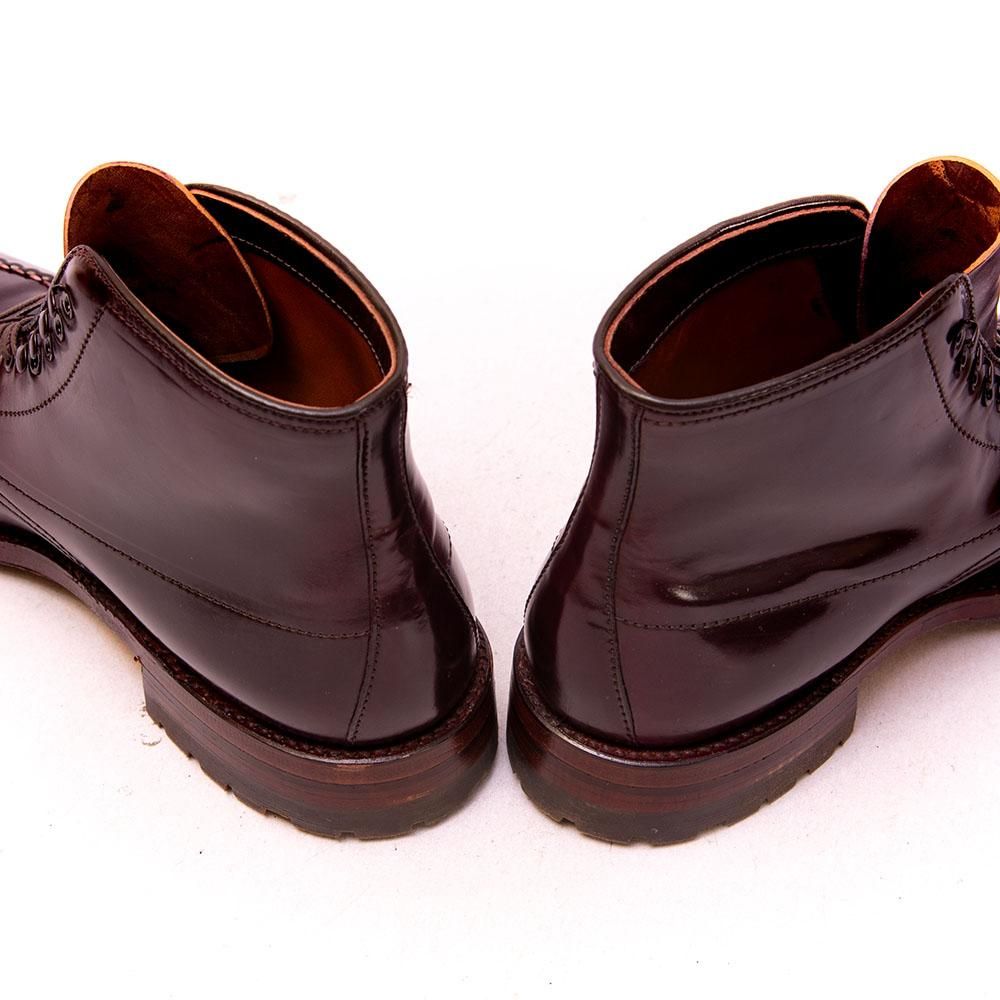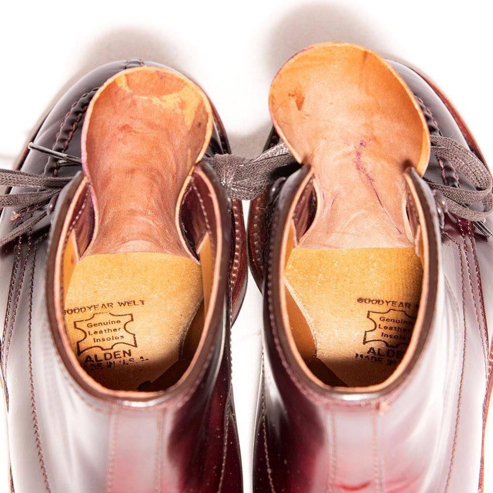 ハーフコマンド仕様にトゥルーバランスラストを採用したひねりのきいたオールデン人気のタンカーブーツ。バーガンディコードバンのとアンティークエッジの色の統一感があります。こちらは使用1、2回程度の状態。