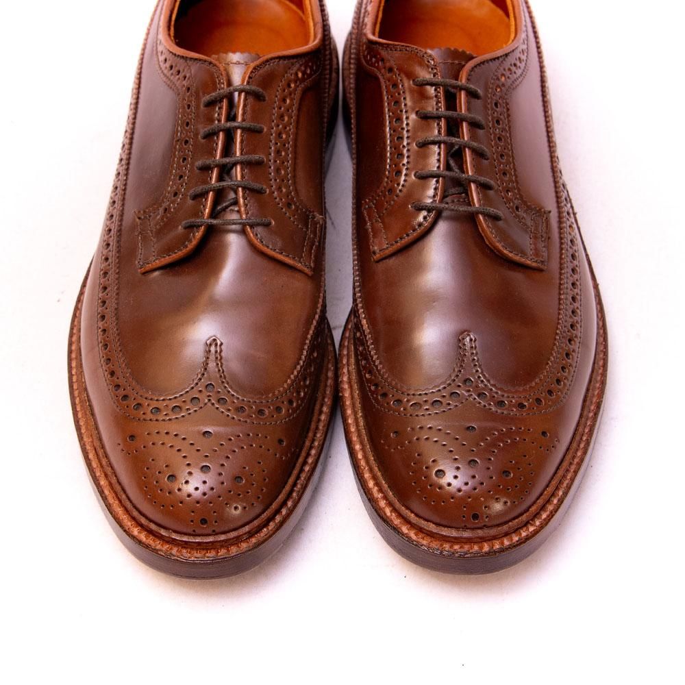 アメリカンシューズを代表するデザインの一つであるロングウイングチップはオールデンもでも975/9751を筆頭に大変人気の意匠です。こちらはラベロカラーの中ではやや赤みの強い個体となっております。