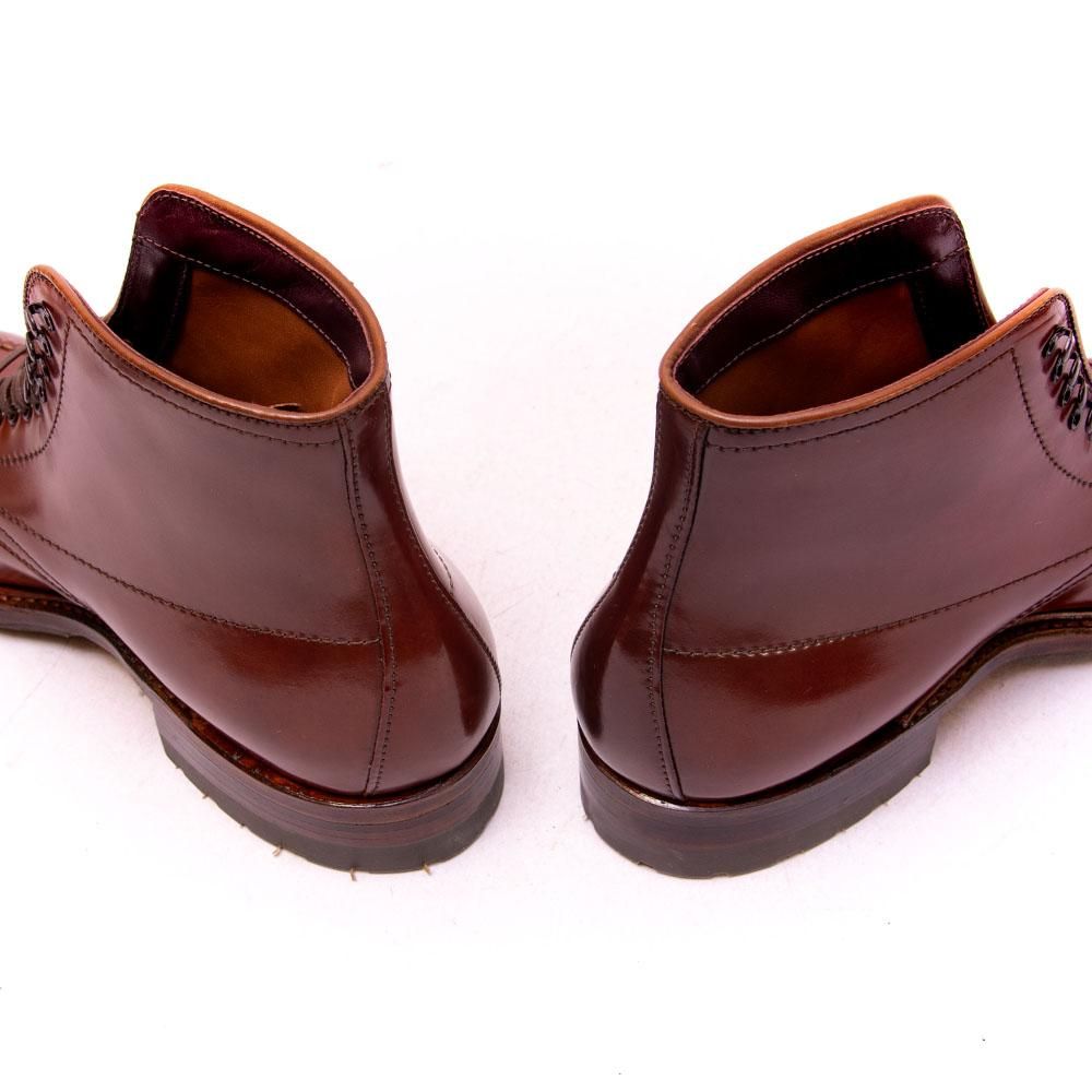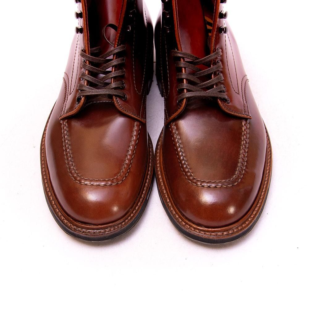 オールデンのレアカラーの中でも生産されることが少ないNo.4コードバンを使用したお品。赤みのブラウンカラーとインディブーツのデザインの相性も良くまとまっています。希少な未使用の状態となっております。