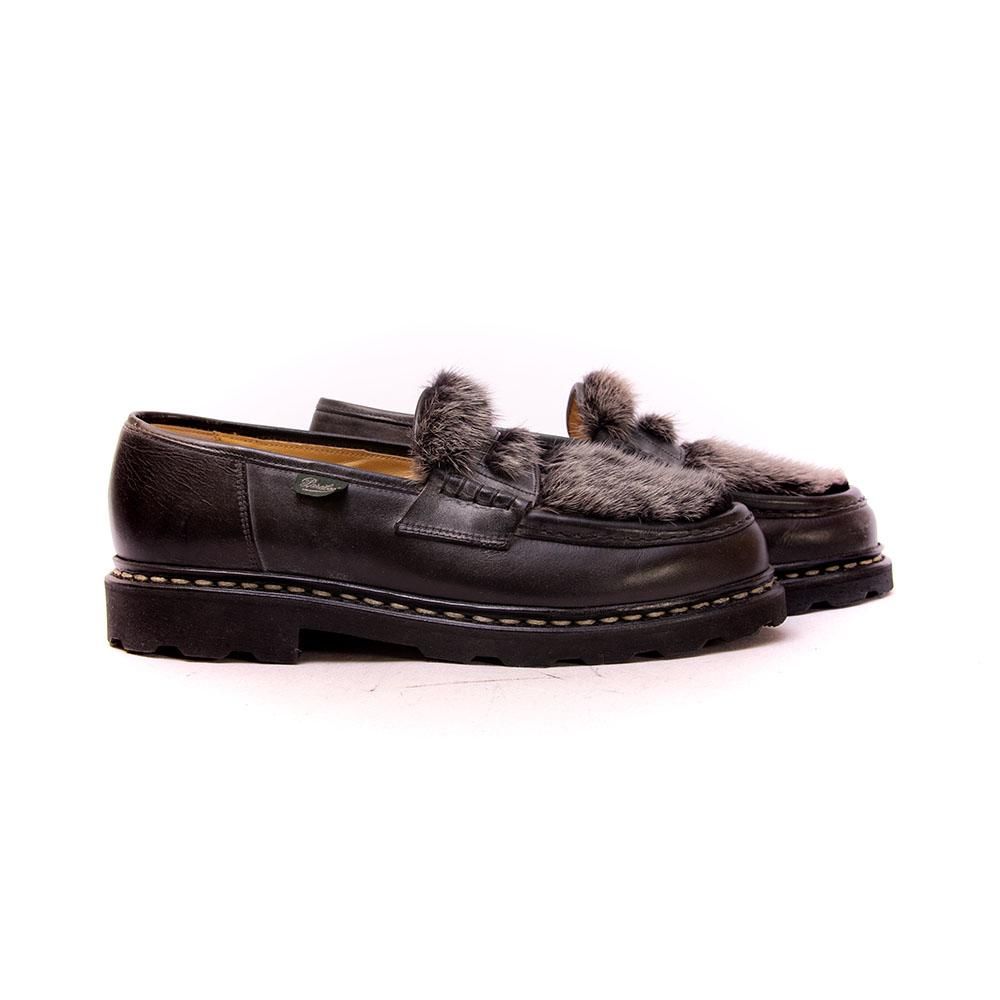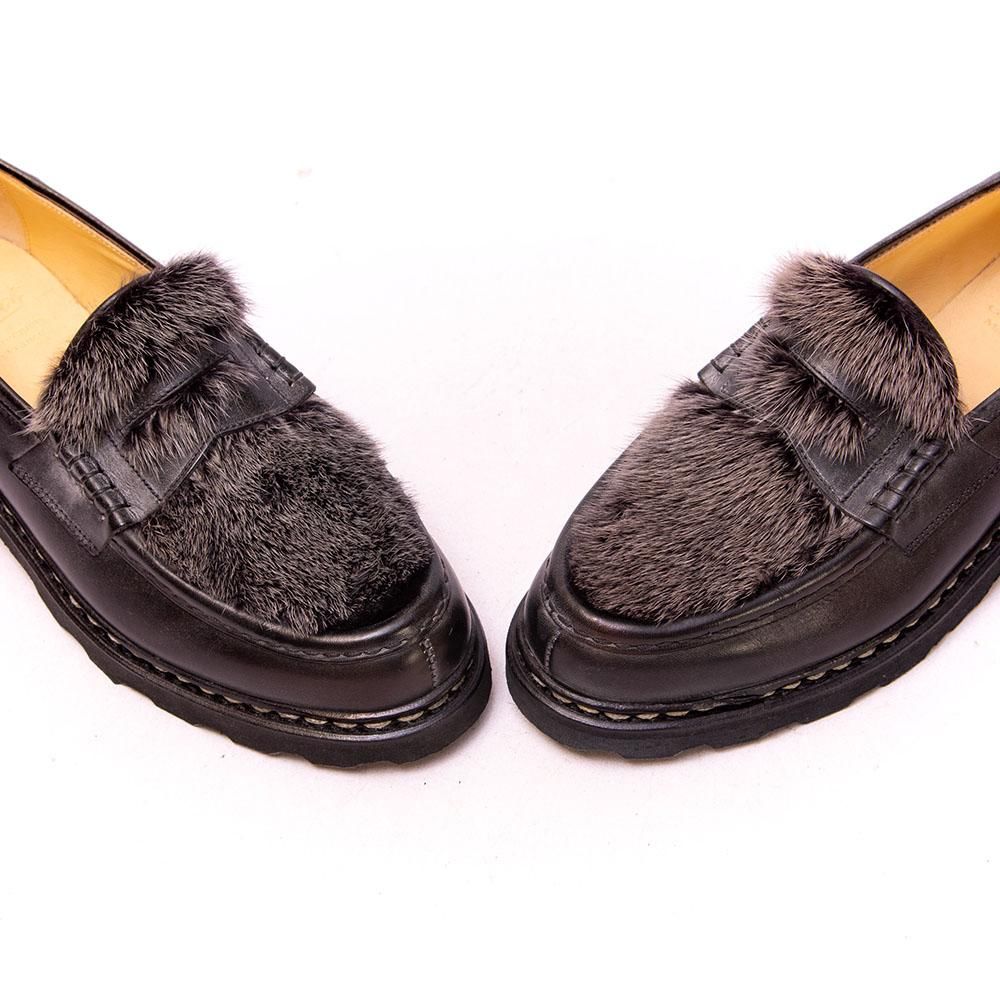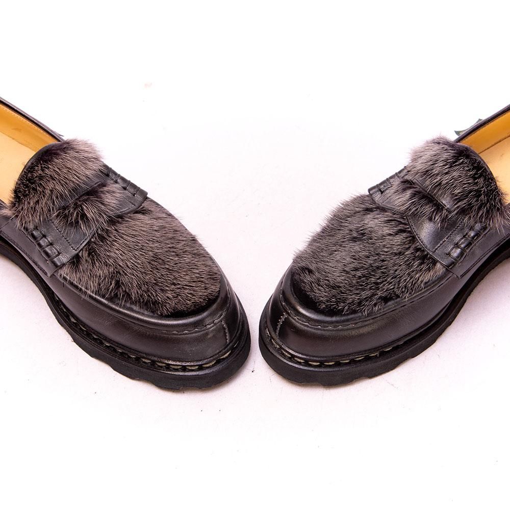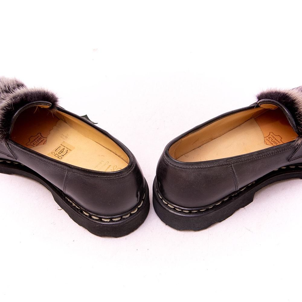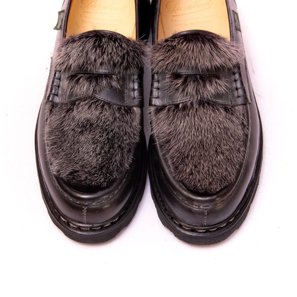 【パラブーツ REIMS(ランス)VISON コインローファー ミンクファー ブラック リスレザー サイズ7.5】