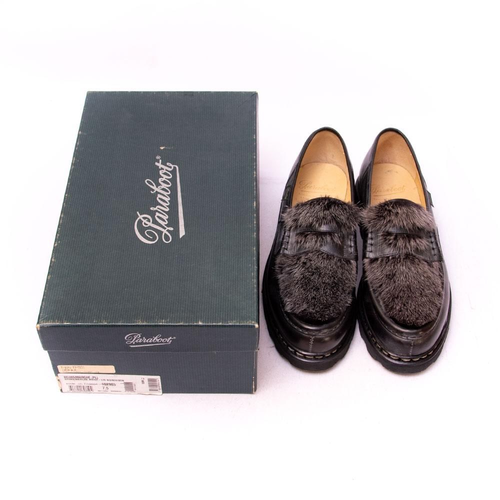 パラブーツ REIMS(ランス)VISON コインローファー ミンクファー ブラック リスレザー サイズ7.5