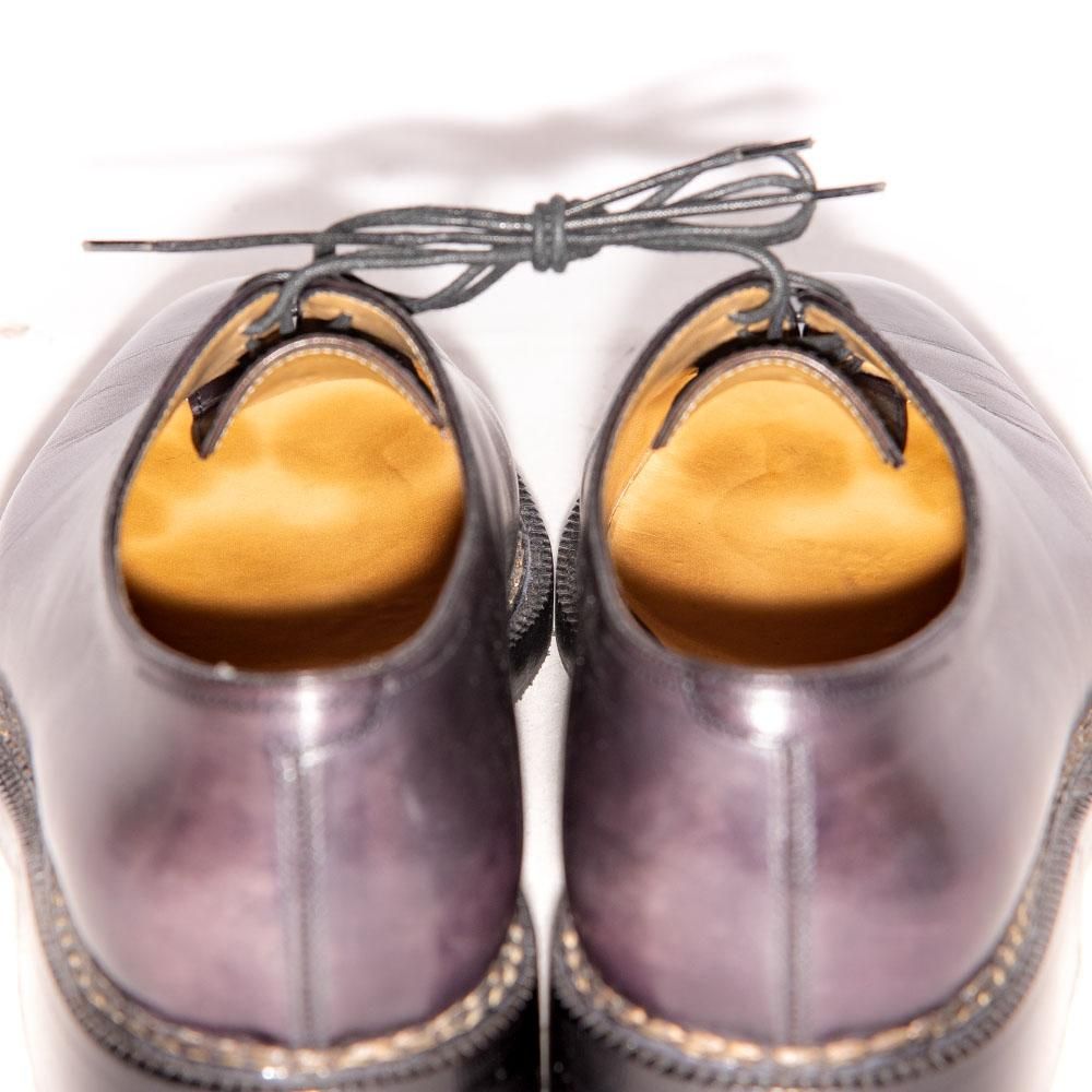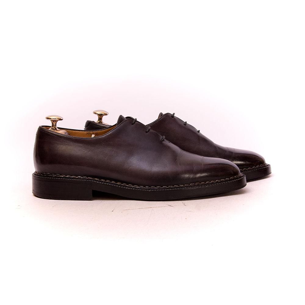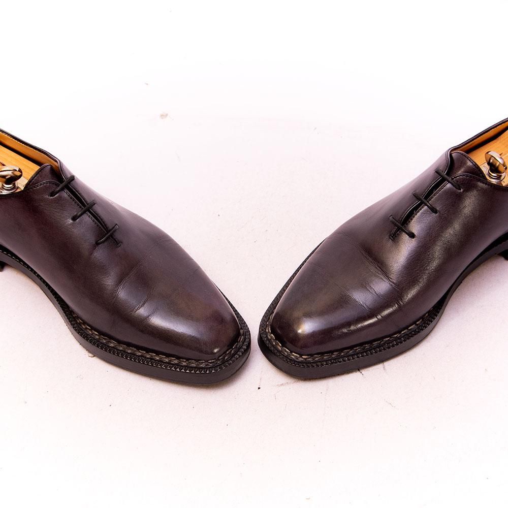 ベルルッティの現行では展開されていないクラシカルなクラブコレクションにノルベジェーゼ製法の希少なアレッサンドロ。ブラックのパティーヌによりムラ感でブルーグレーのような色合いです。着用数回程度の美品の状態です。
