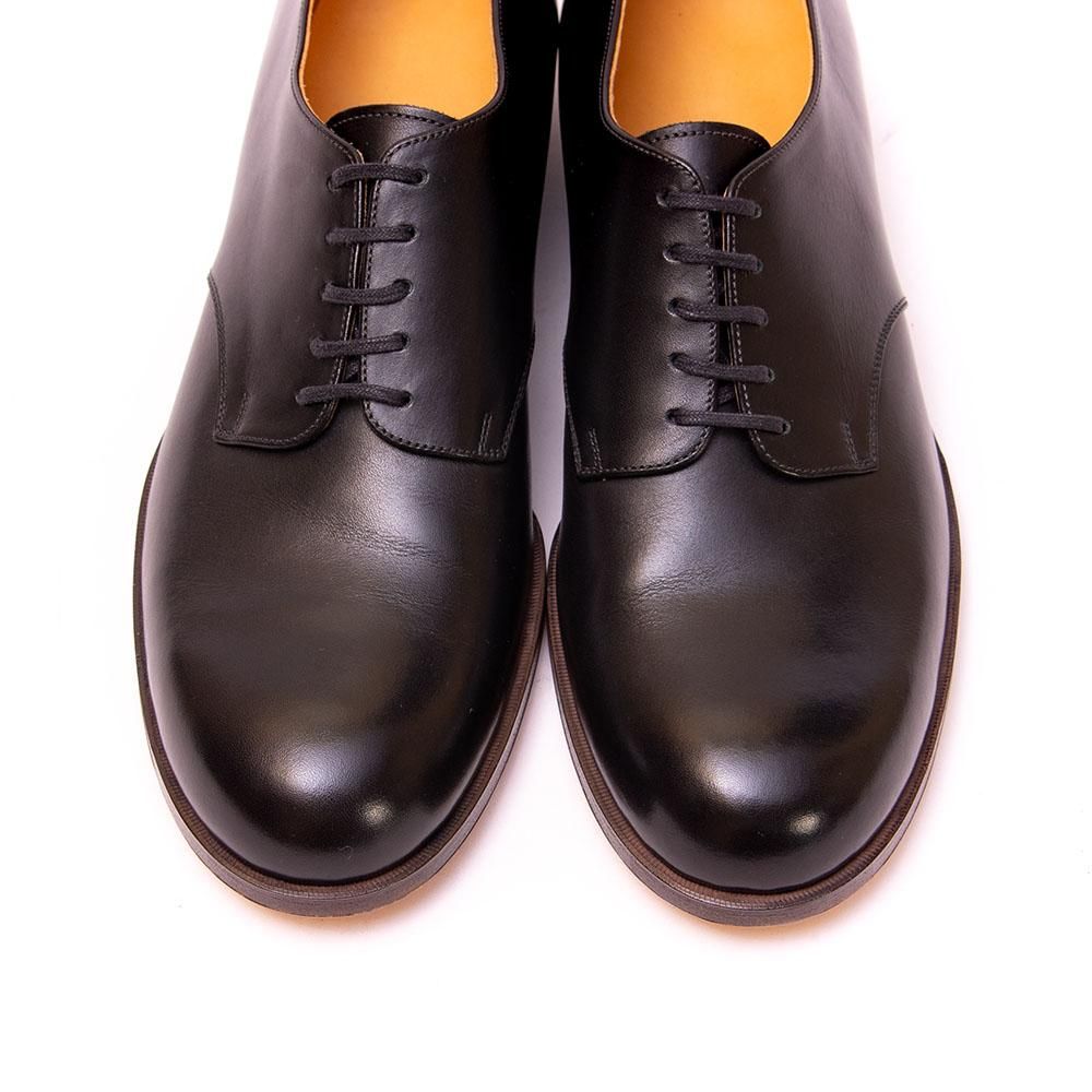 フォルメはデザイナー自身が木型を作り、土踏まずや踵の絞りから履き心地にもこだわりをもっています。非常にシンプルなプレーントゥのデザインにぽってりとしたトゥでミニマルかつ柔らかい印象です。