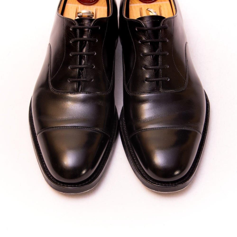 チャーチを代表するクラシックなストレートチップのコンサル。癖の少ない173ラストのブラックのストレートチップは一足あると便利です。こちらはツヤ感も良く、履き皺もおだやかなカーフの個体となっております。