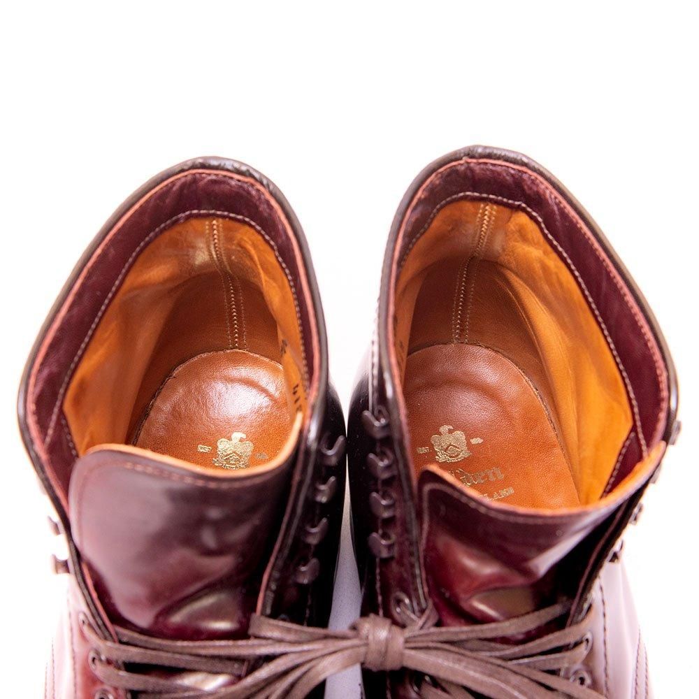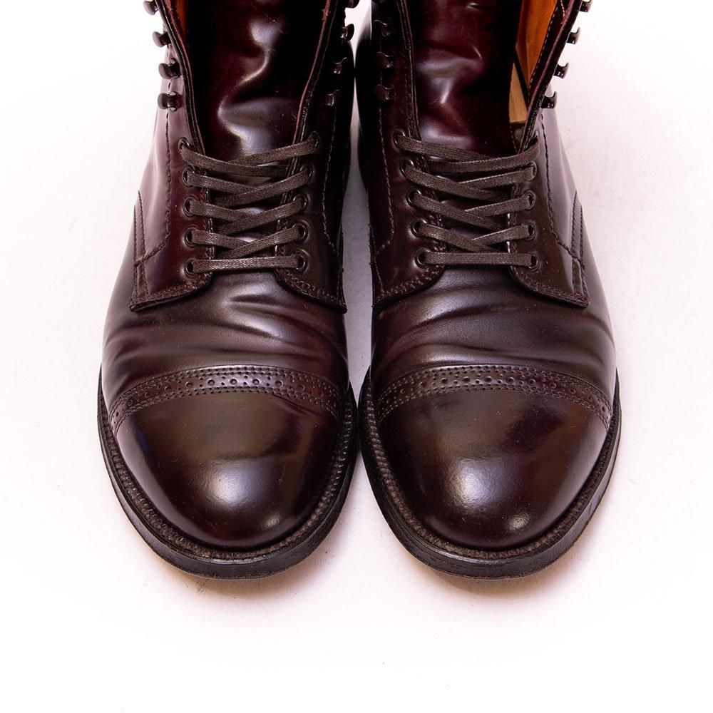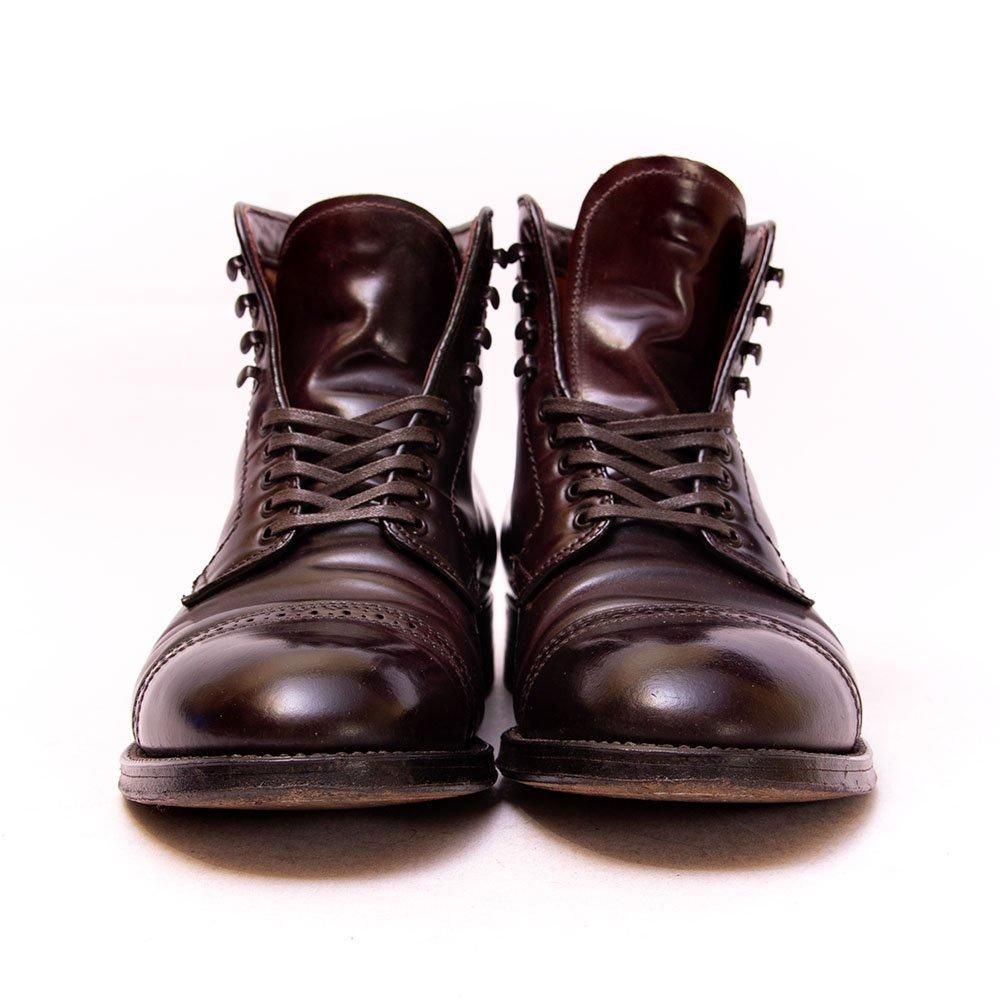 モディファイドラストのオールデンのブーツは吸い付くようなフィッティングで歩く日にもおすすめです。パンチドキャップデザインとバーガンディコードバンの光沢感は無骨とエレガントさを併せ持ちます。