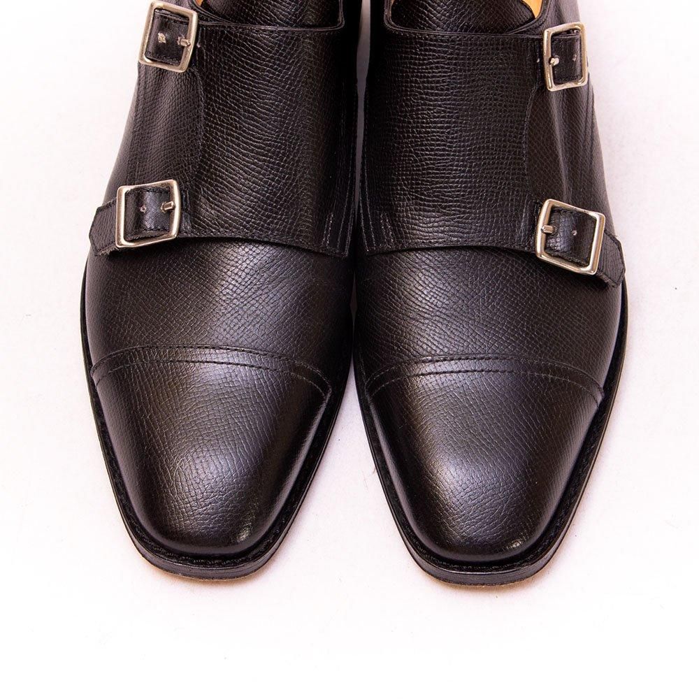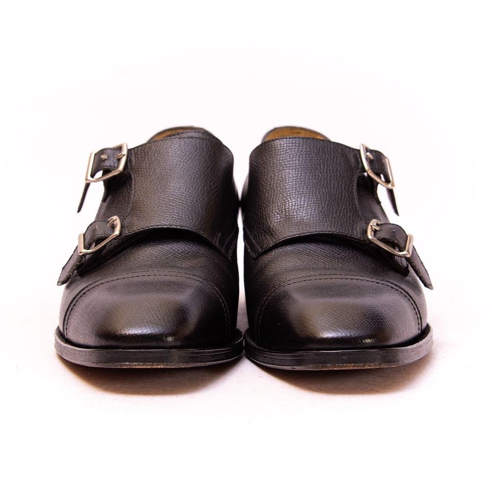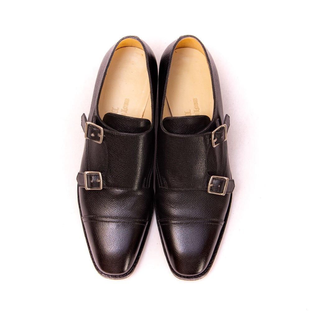 希少な古い時代のジョンロブのレディースのダブルモンク。細かいシボ革にコバやソール、フォルムもすっきりさせることによりエレガントな仕上がりになっております。着用一回程度の良好なコンディションです。