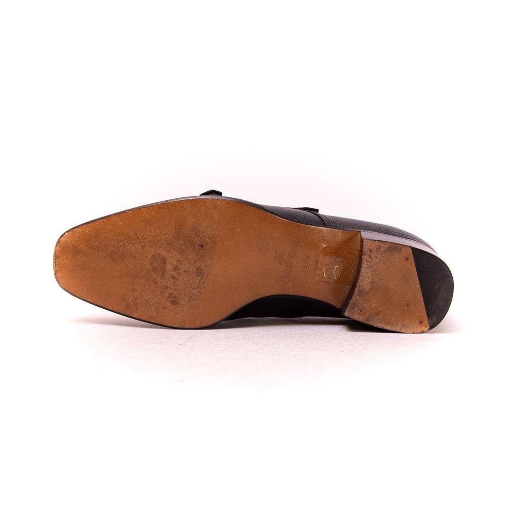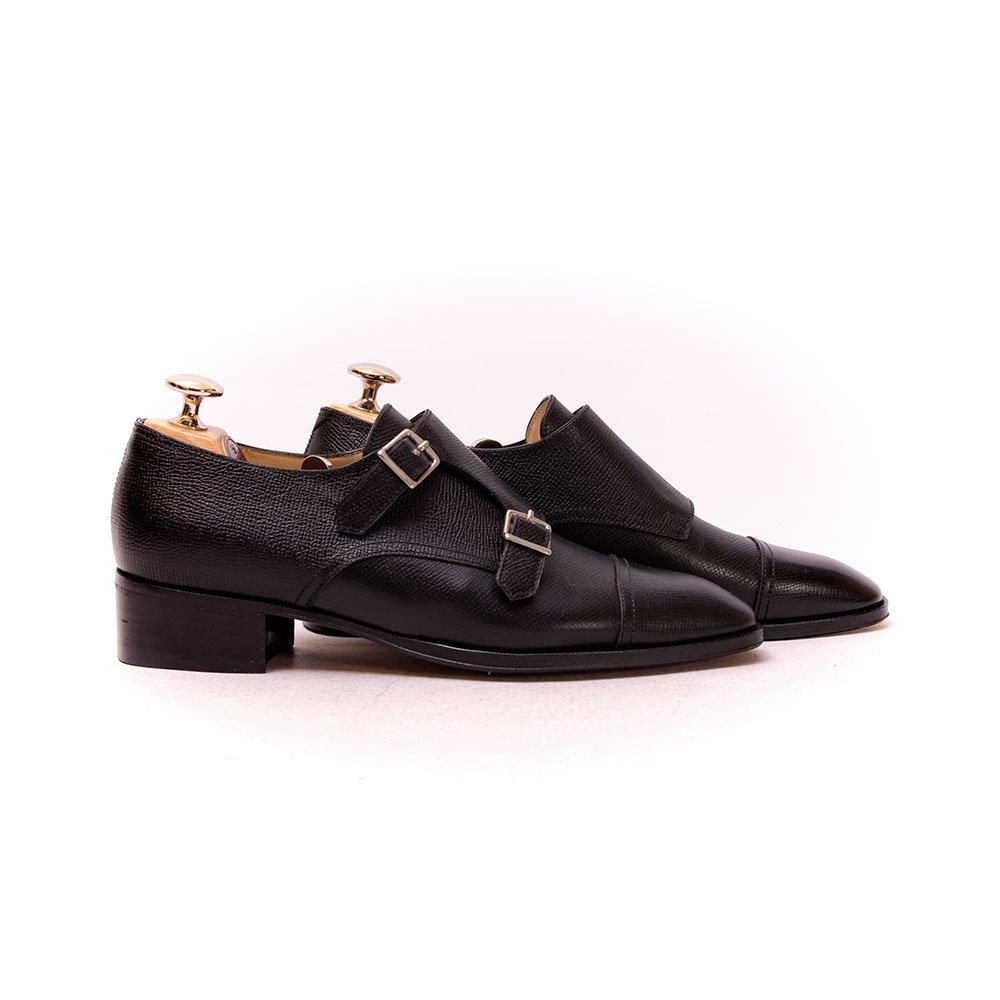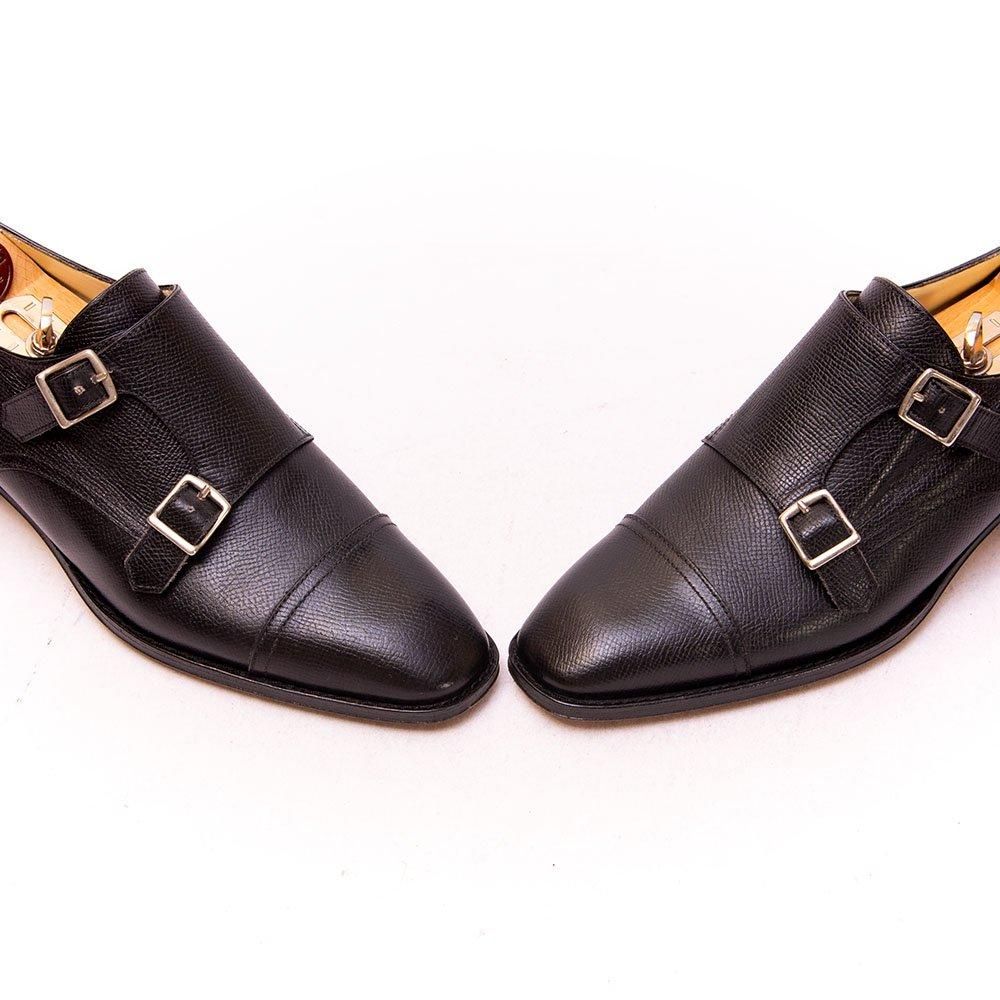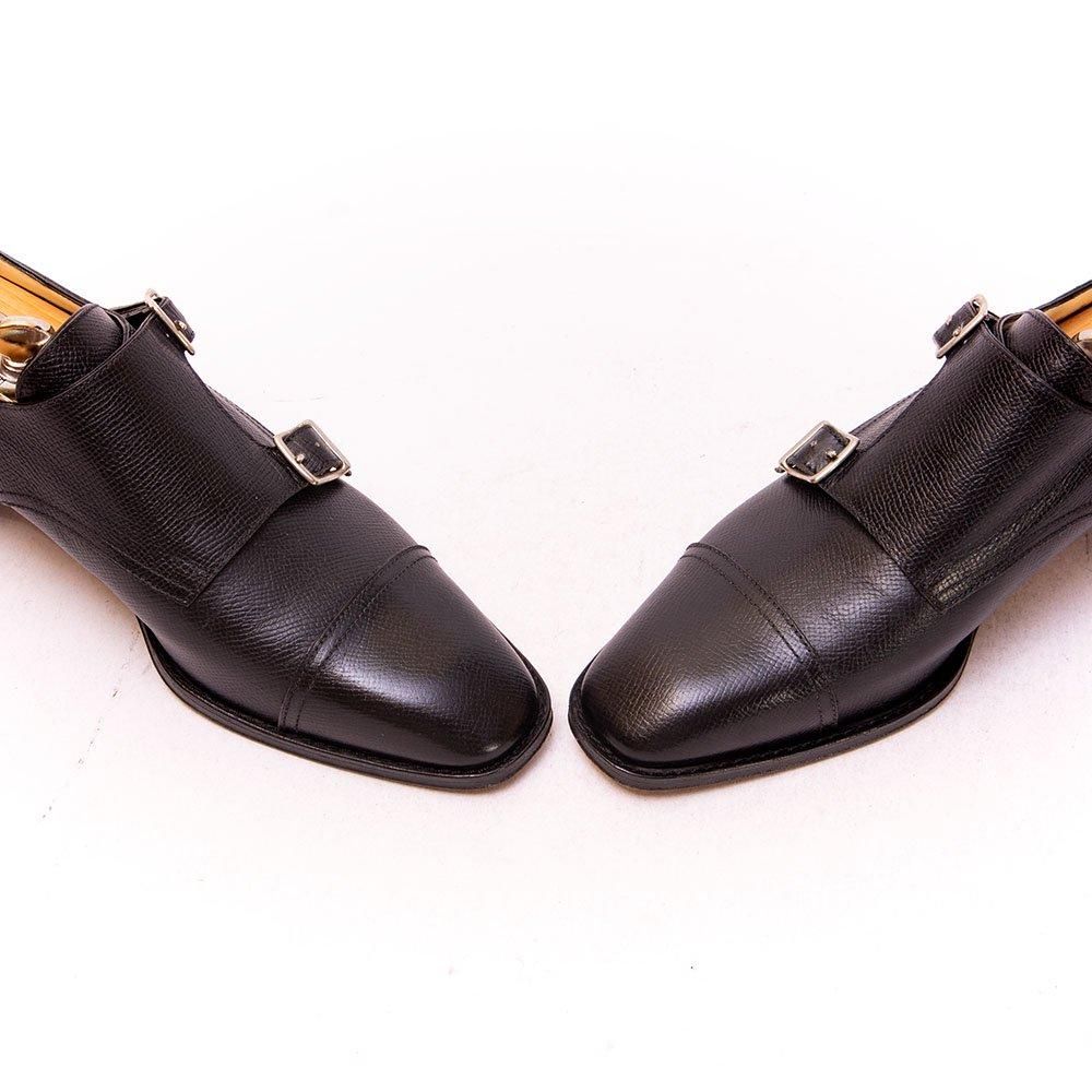 希少な古い時代のジョンロブのレディースのダブルモンク。細かいシボ革にコバやソール、フォルムもすっきりさせることによりエレガントな仕上がりになっております。着用一回程度の良好なコンディションです。