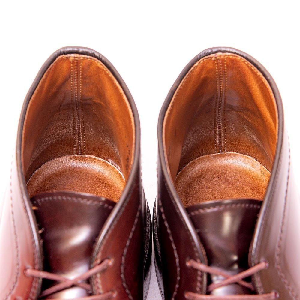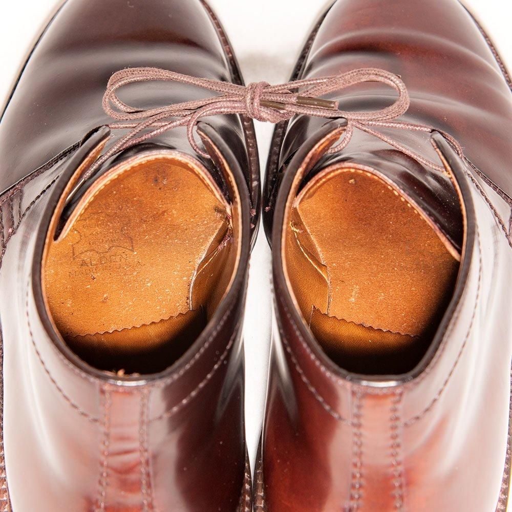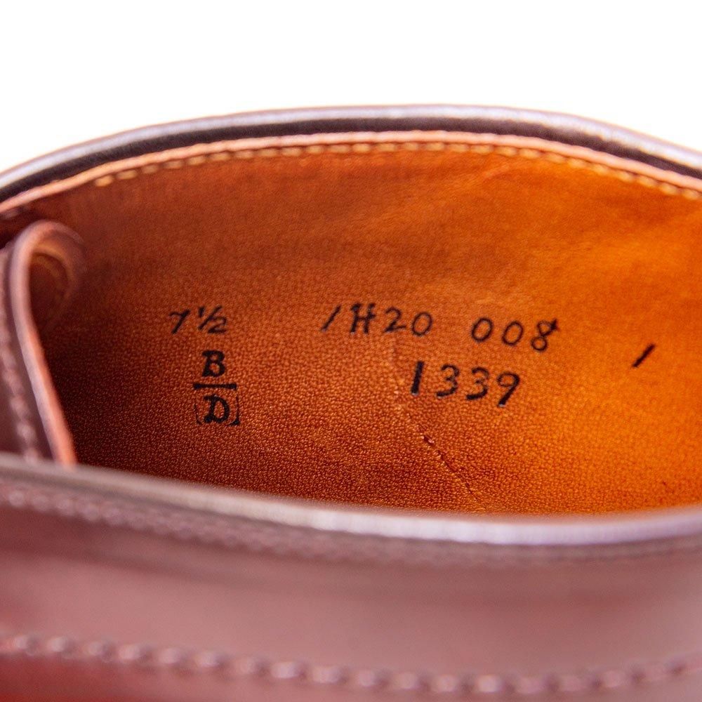 オールデンのコードバンのロングセラーモデルの1339は重厚な見た目と素材ならではの光沢感が魅力。バーガンディの色味もやや濃い個体。こちらは中底の沈みやアッパーが馴染み始めた履き慣らしの少ない状態です。