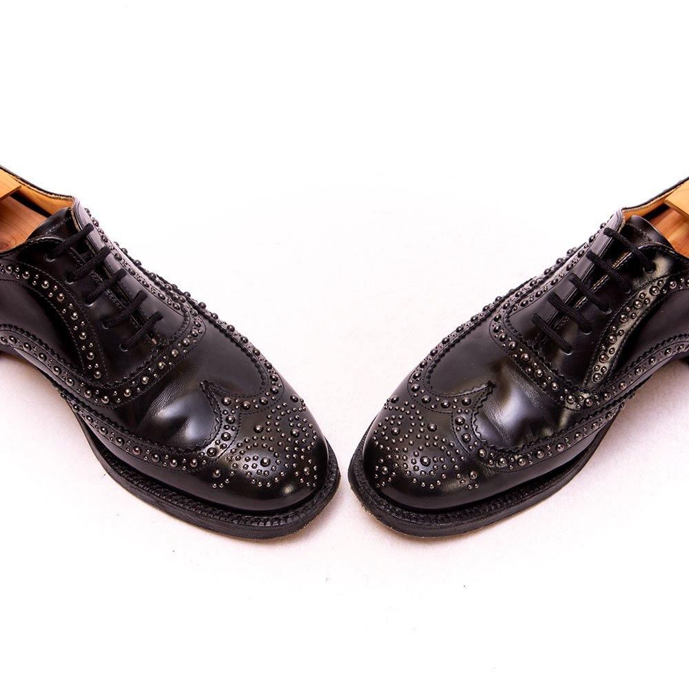 チャーチ定番フルブローグのバーウッドにシルバーのスタッズの装飾で華やかかつパンクな印象に仕上がっっています。光沢感のあるブラックのポリッシュドバインダーとも好相性。中底の沈みも僅かで使用感は少ない状態。