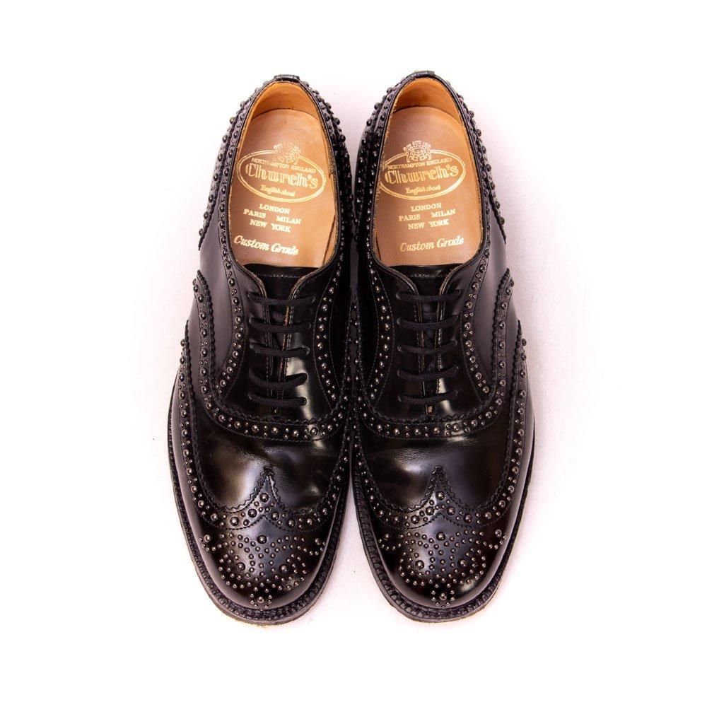 チャーチ BURWOOD 2S(バーウッド) ウィングチップ フルブローグ スタッズ ブラック ポリッシュドバインダーカーフ サイズ6.5F