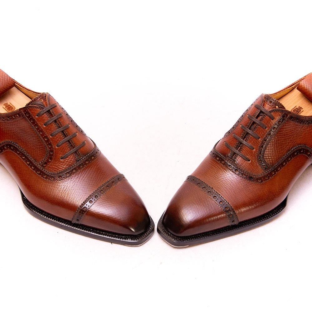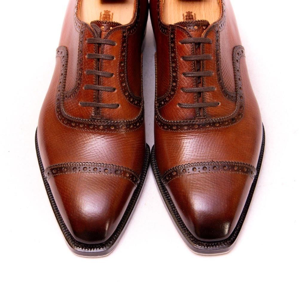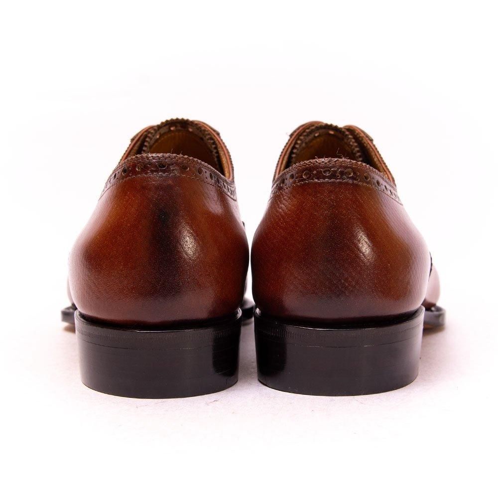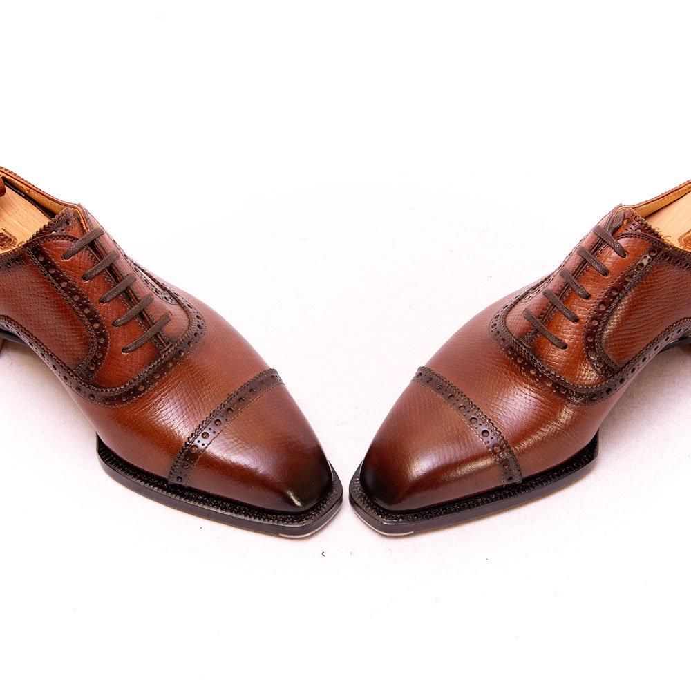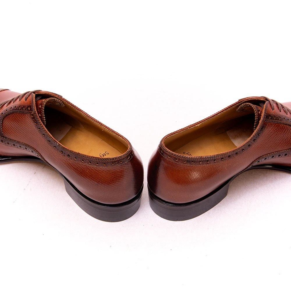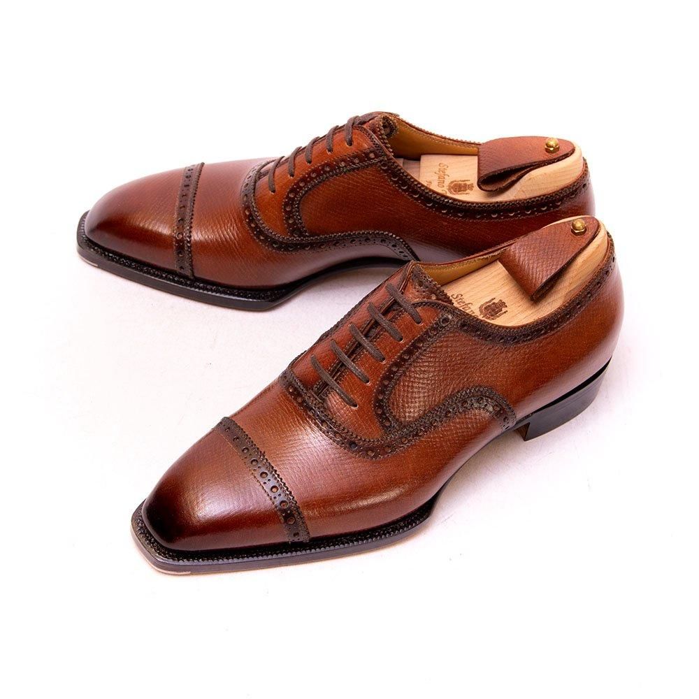 ロシアンカーフを模したひし形のシボ感のアーリントンカーフを使用したクォーターブローグ。シームレスヒールやフィドルバックなど贅沢な仕様、メリハリの効いたラストによるステファノベーメルらしい仕上がりです。