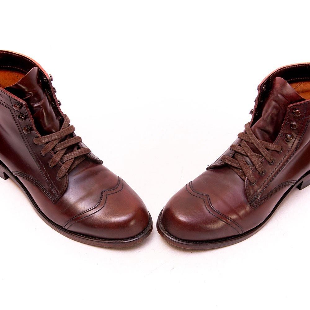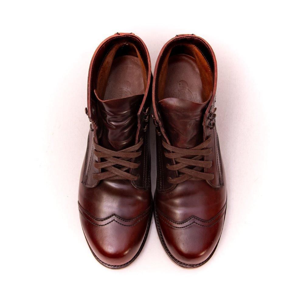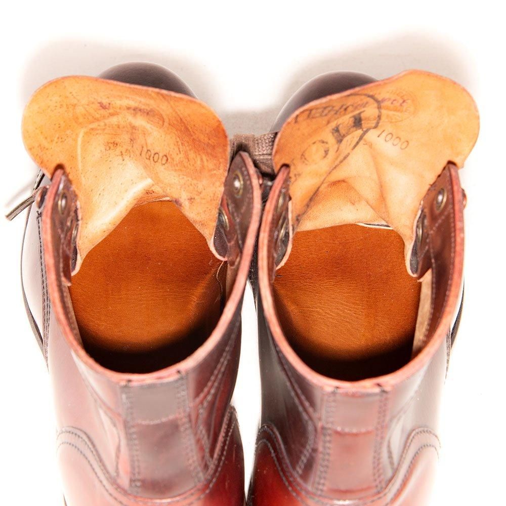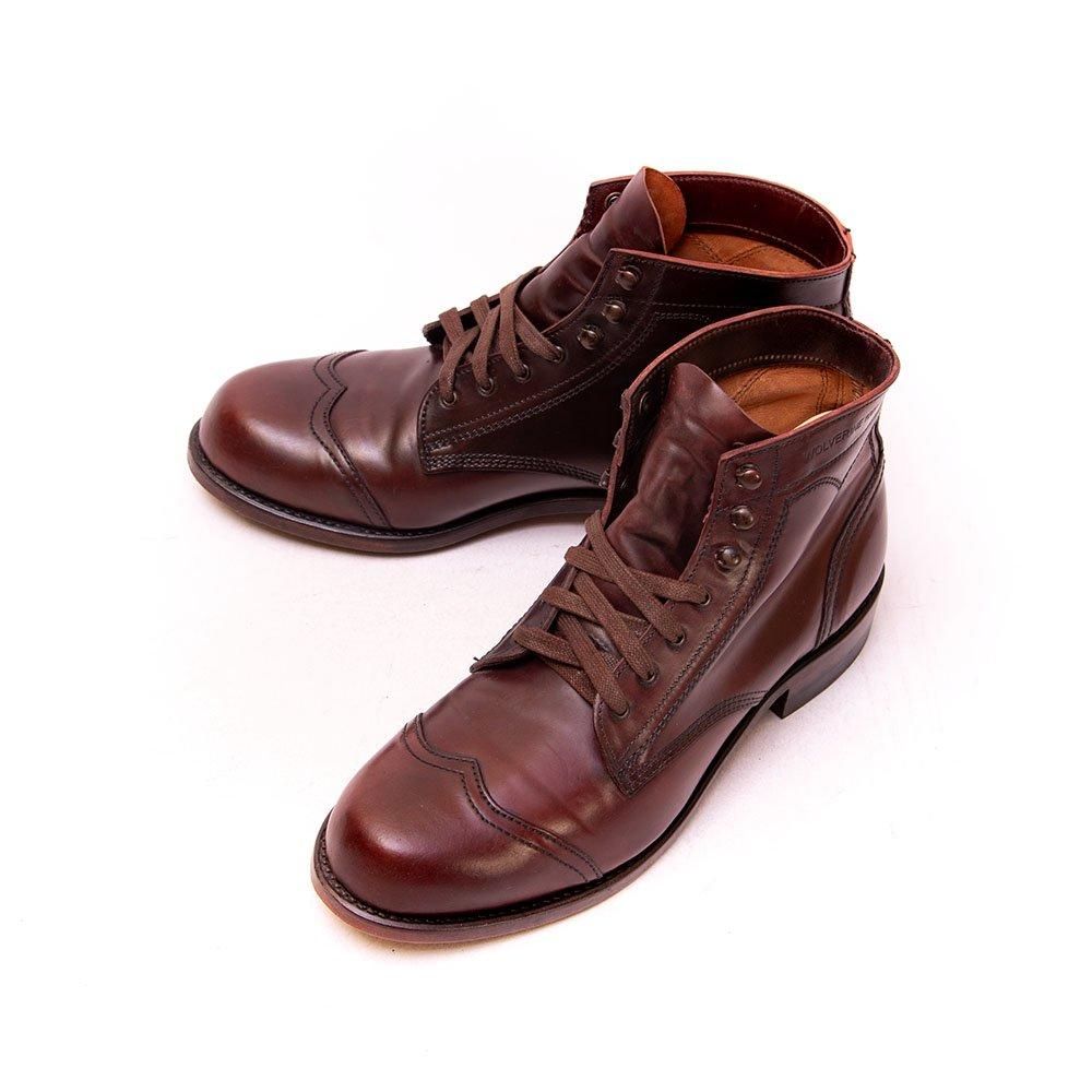 タフで歩きやすいウルヴァリン1000マイルブーツにホーウィン社コードバンを使用した限定モデル。タン裏部分にスタンプも大きくある個体です。ウィングキャップデザインが良いアクセントになっています。