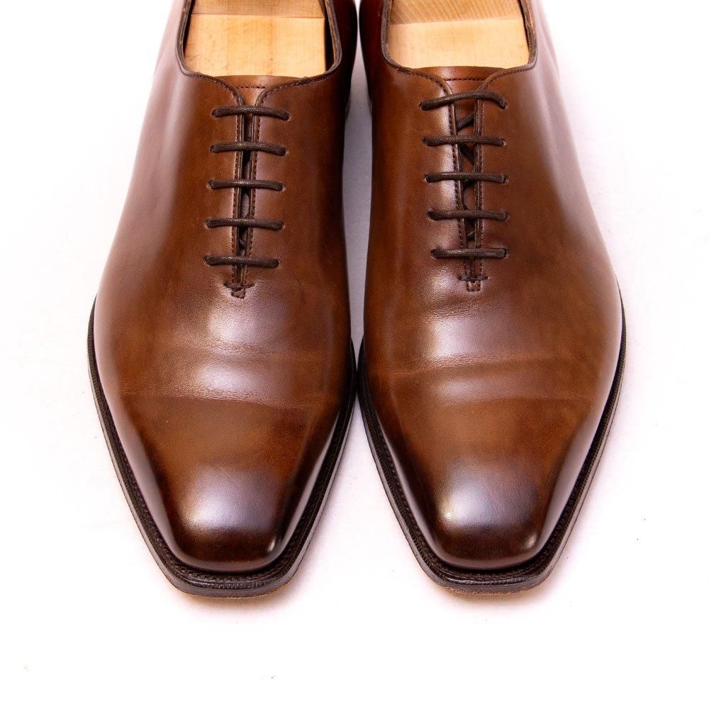 890ラストは125周年を記念して2015年と比較的最近発表されたエレガンスな木型。エドワードグリーンでは珍しいチゼルスクエアトゥでノーズも長めもモダンなシルエットが人気です。ツヤ感の優れた革質の個体。