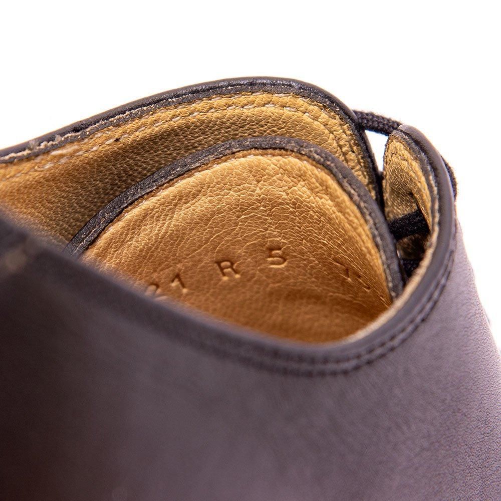ぽってりとしたキャップトゥでパラブーツらしい雰囲気のアゼイ。ミリタリーのサービスシューズのような無骨な3連のステッチデザイン。革がほぐれ始めた履きやすい状態。流通の少ないメンズの最小サイズです。