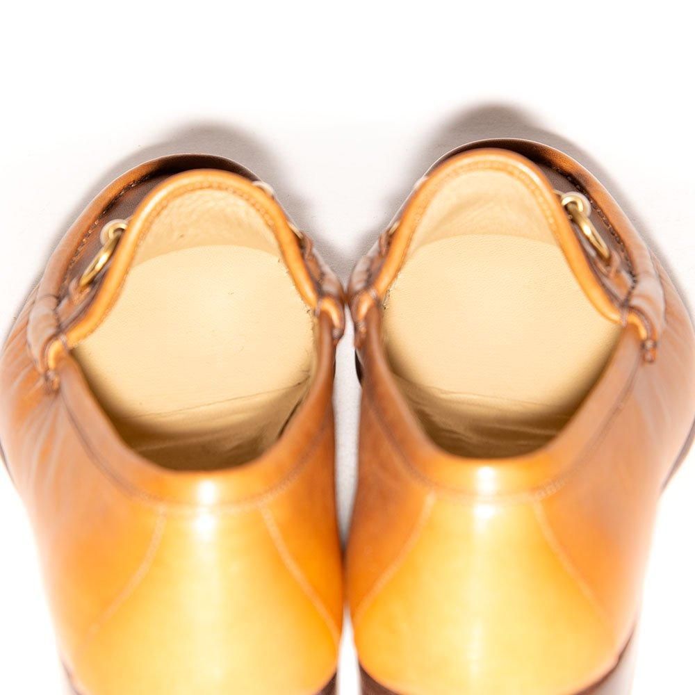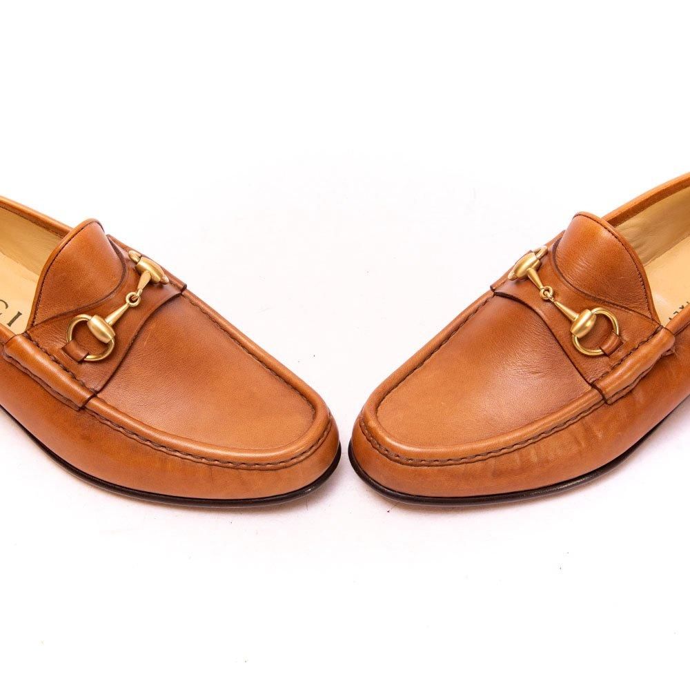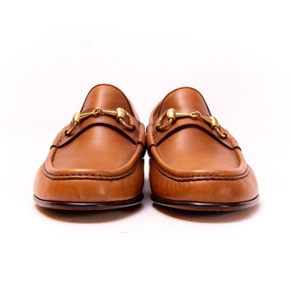 古い製造の元祖ビットローファーのグッチの未使用品。普遍的なフォルムとヒドゥンチャネルの底付けも非常に丁寧な仕上がりです。軽快な黄色みのライトブラウンとゴールドのビットの色合わせです。