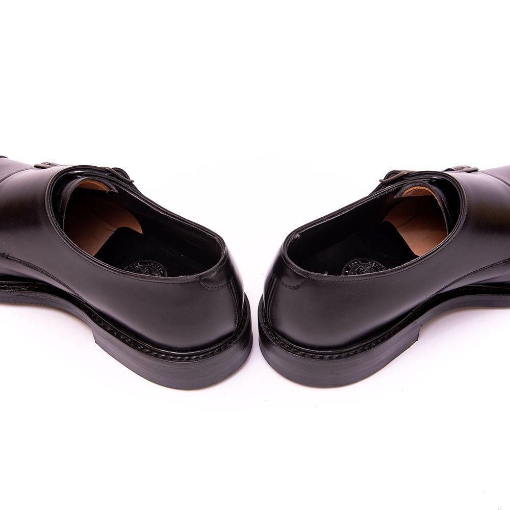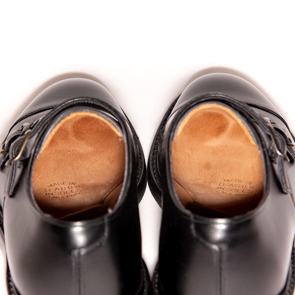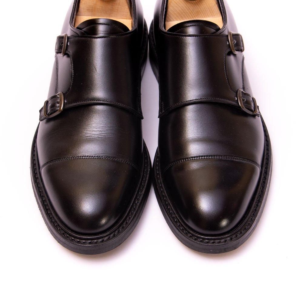 ダブルソールにストームウェルトのボリューム感のある1886コレクションのダブルモンクシューズ。オールブラックに統一された中に真鍮のバックルがマッチしてシックな印象で履けます。着用1,2回の良好な状態。